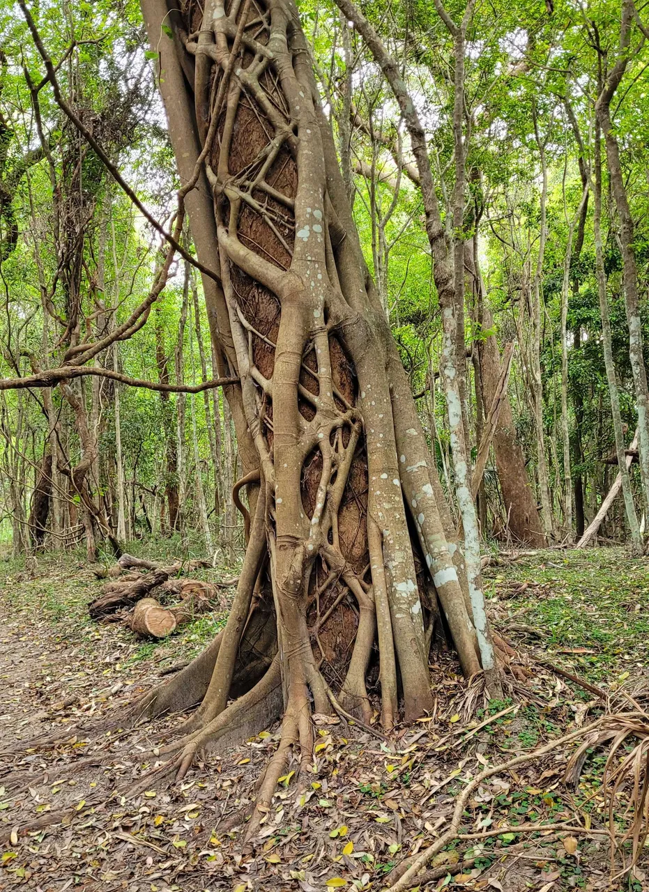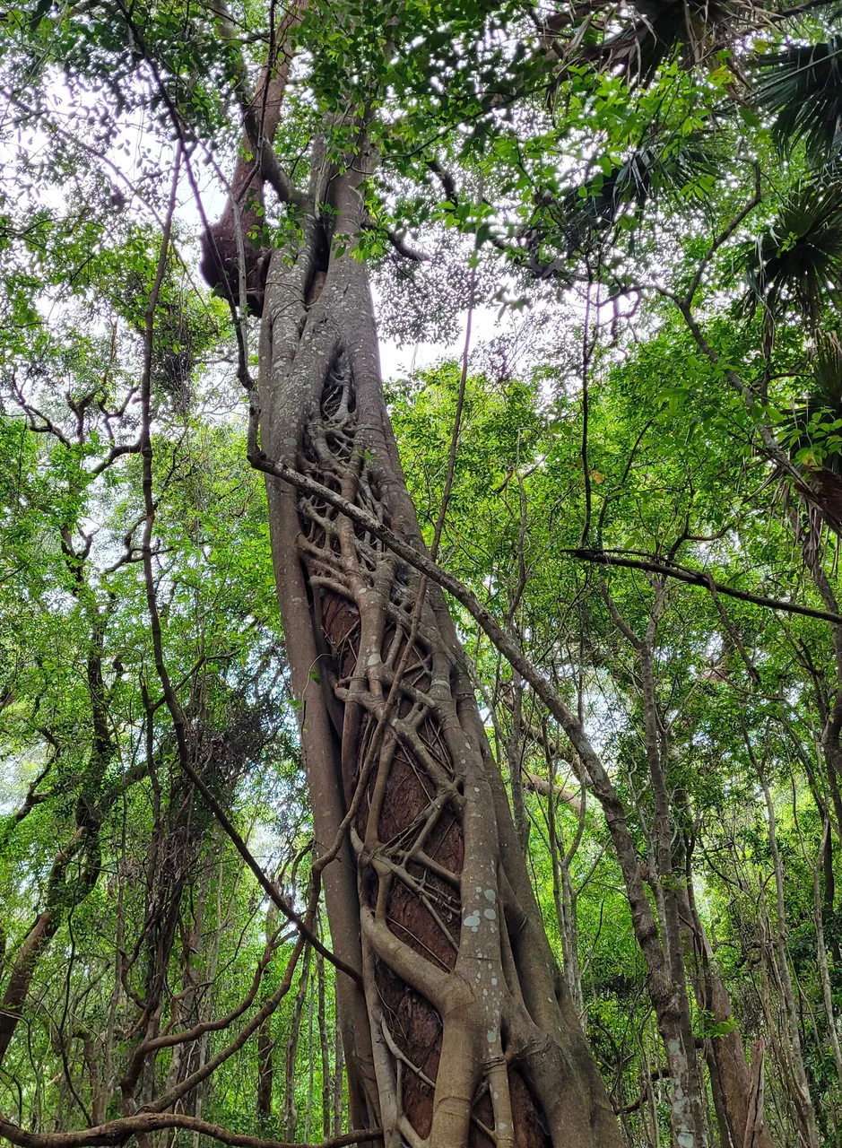 This caught my eye. Looks like a Moreton Bay fig that is enveloping a eucalyptus tree - amazing lattice work