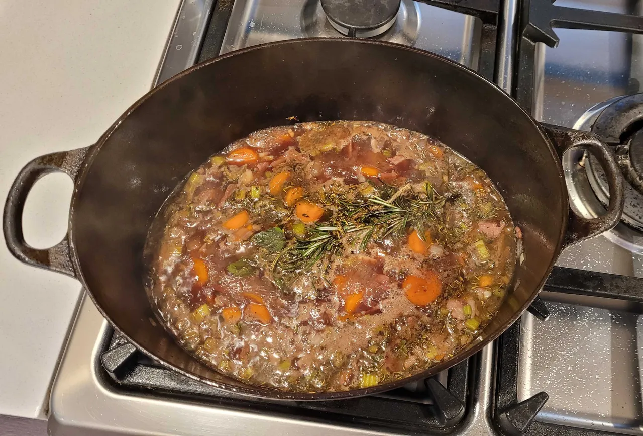Went French for dinner - a nice rich Beef Bourgignon sauce - just add the browned blade steak and serve with fresh veges.