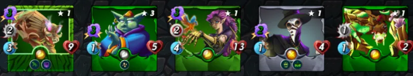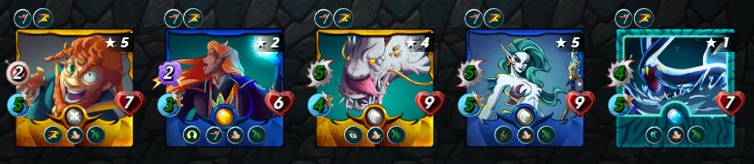 In front Unicorn Mustang at level 2, which is a classic for Earth teams. After him, four magical monsters followed, all powered by the summoner. This is a problem!