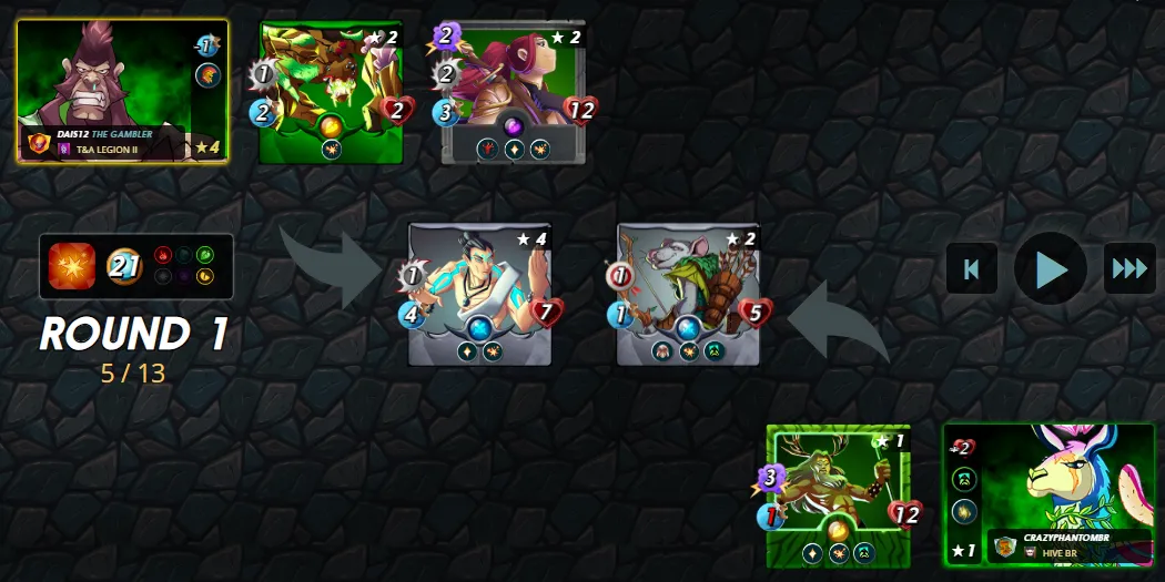 It is in round 3 that we clearly see whether the strategies have produced results. The opponent managed to collect six points of damage, 3 magical and 3 melee. We also have 6 points of damage, magic only.