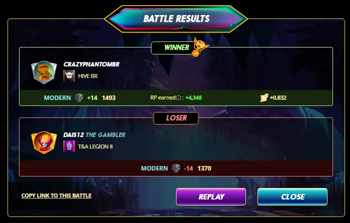 This match took place in the Silver 2, Modern Mode, No Bot! league, before the end of the season, and can be watched via the link: