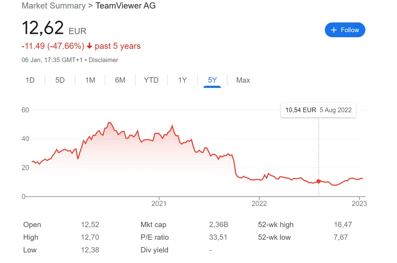 TeamViewer is down by over 400% from the ATH during the pandemic in 2020 and the market is getting back to normality with their boom days over.