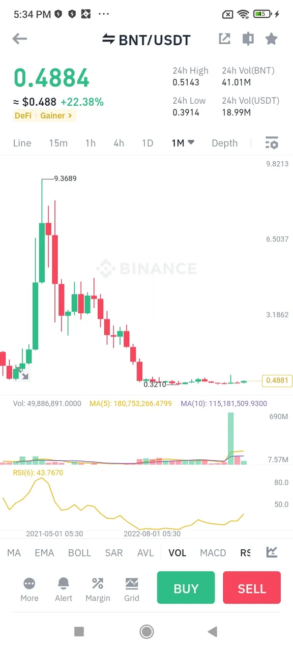 BNT coin increased by 28% at each coin @$ 0.5120 with a chance of rising @$0.6000 in upcoming 4 hours, very impressive and benificial trading It is to be highly fluctuated BNT coin's price may suggest potential for upward movement but can also signify inherent volatility and unpredictability,which could lead to downtrends, to It is essential for Investors to carefully, monitor market conditions stay informed about project developments and exercise caution when trading in such assets, Diversification and risk management strategies are key in dealing with highly volatile the coin chart displays various factors including market strategies,technological development and investor sentiment all of which an impact on Bitcoin seeing the BTC market dominance with its fixed supply 21 million you will understand having Billion of coins and inflationary supply does not help the BTC market never sliding from it and market dominance of BTC in cryptocurrency market always remains close to 50% to tolal market cap proves How much BTC is ahead of the cryptocurrencey market as a store of wealth in the market.