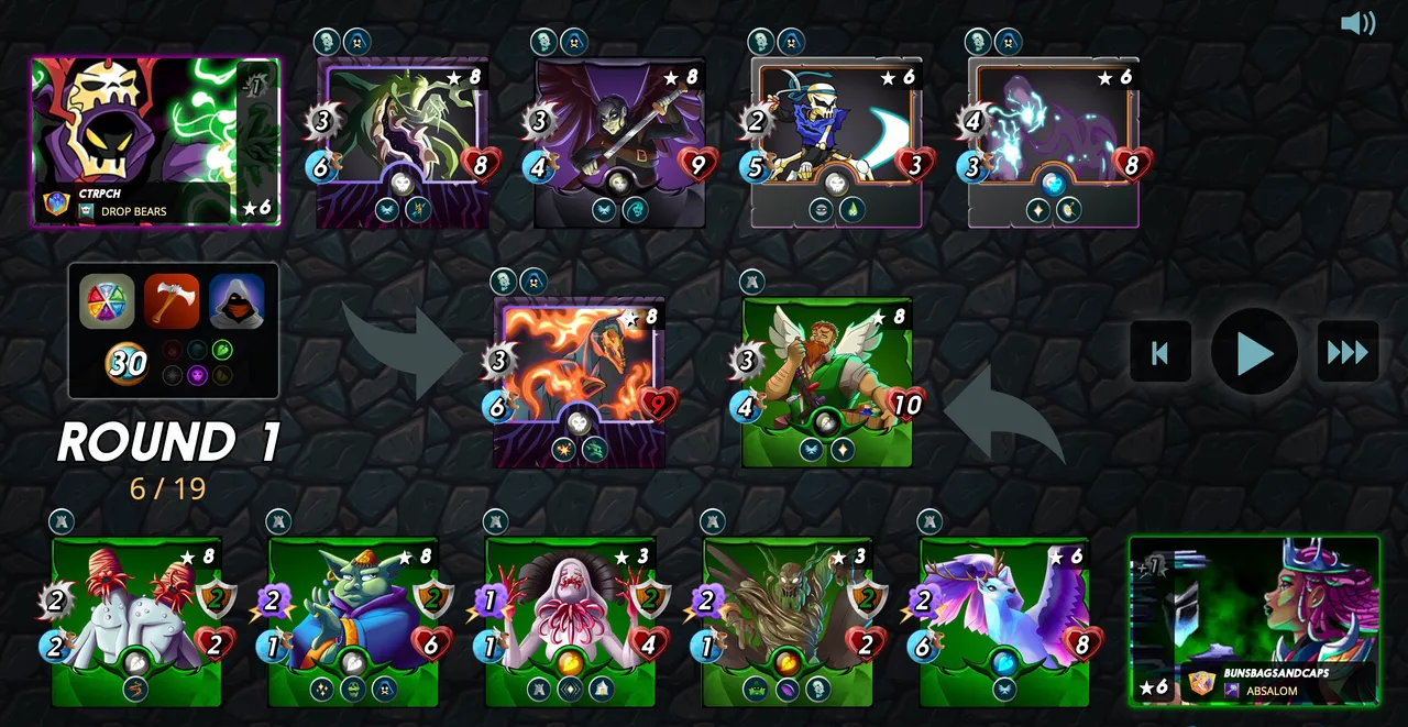 This is a good ruleset for levelling the players, as you can see some monsters only come into their most deadly when they are buffed up by the summoner. Looking at my opponent's team, they are relying on the plus-one magic damage boost, which is not happening. They have also wasted one mana point with the summoner.