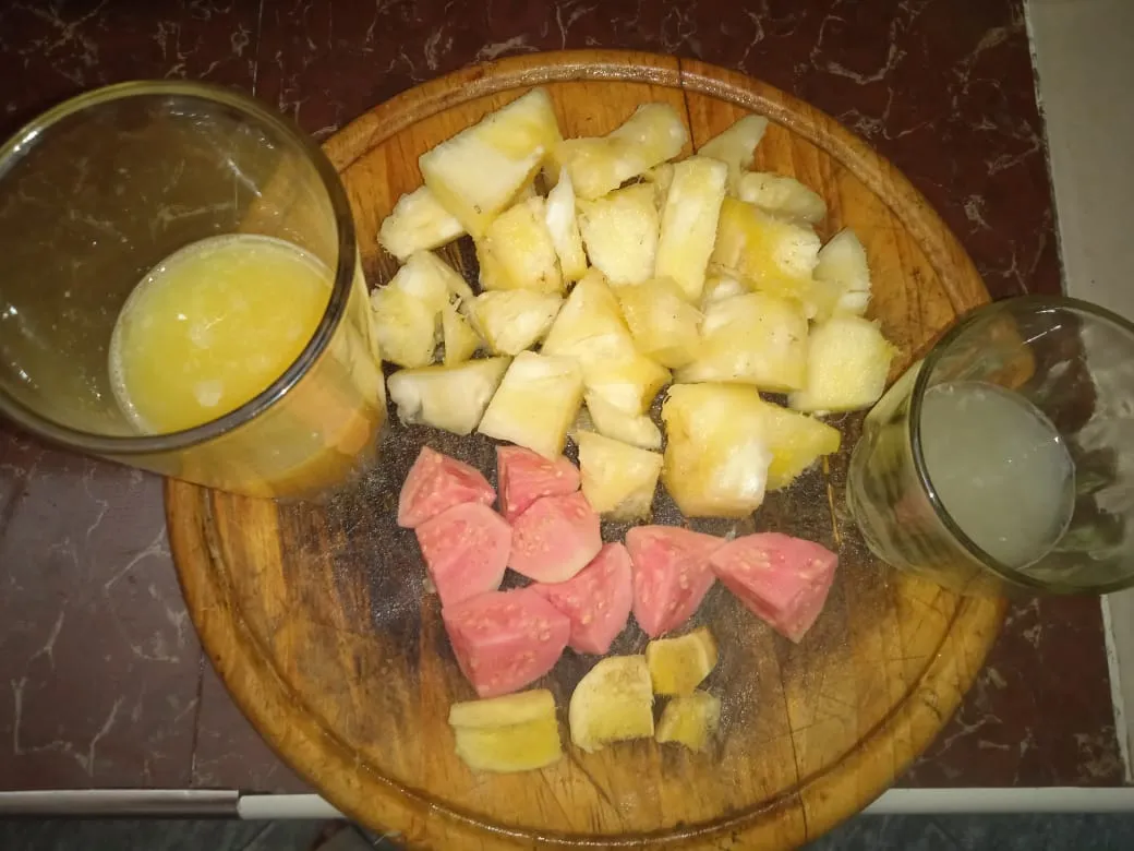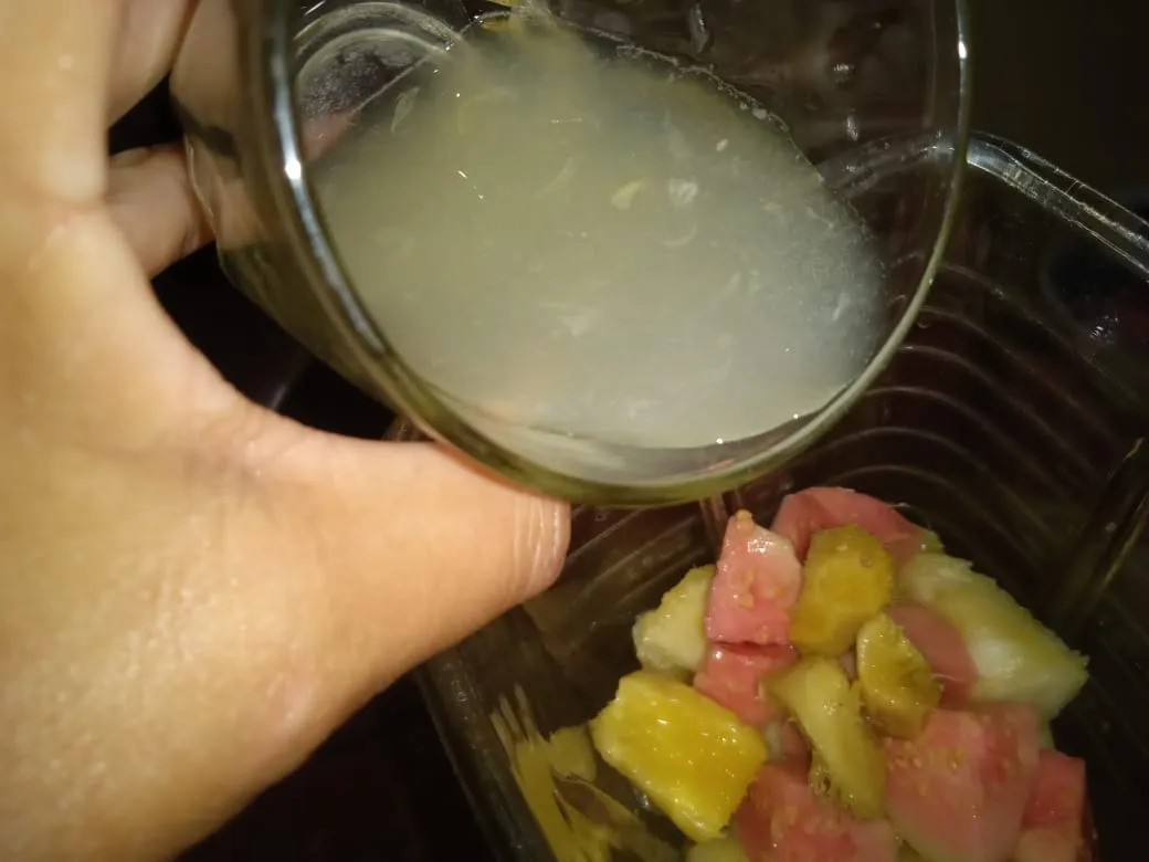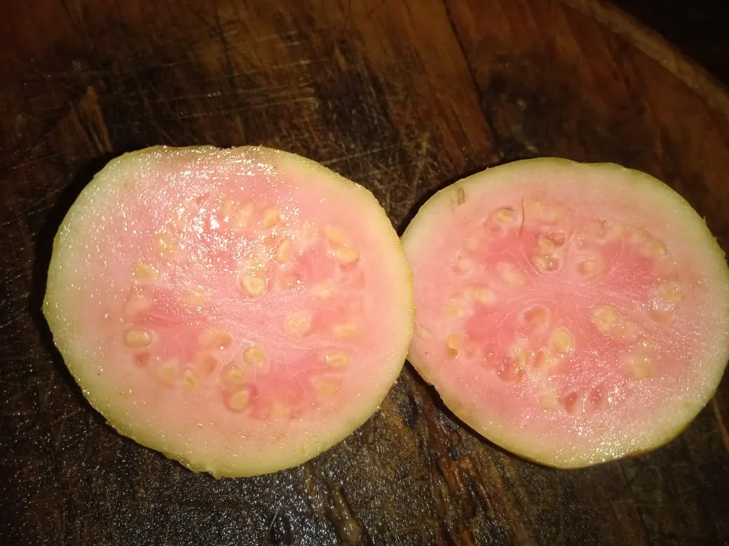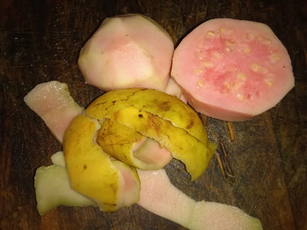 Remove the skin from the guava and chop it into small pieces. Set aside.