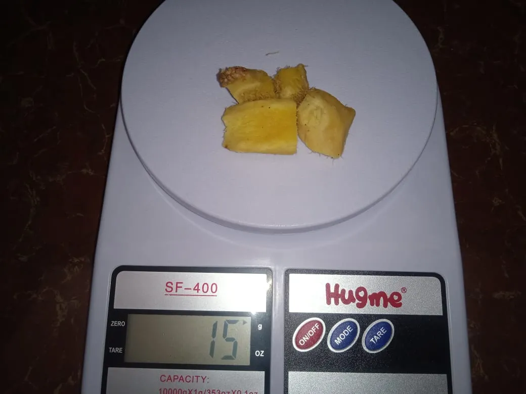 Then, remove the skin of the ginger, cut it into small pieces and weigh it. Set aside.