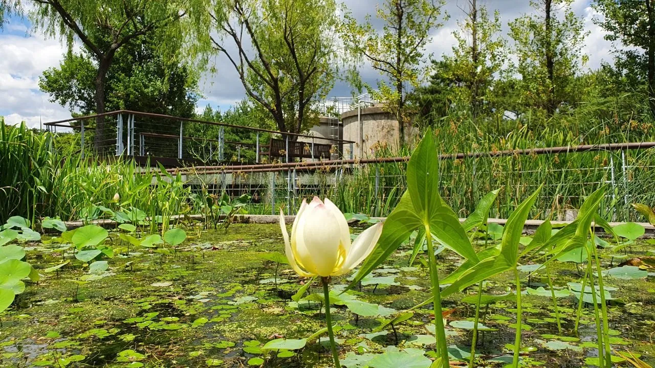 걷고 걷다가 수생식물원에 도착했습니다. 물 위에 식물이 있다는 점에서 수질정화원과 비슷해 보였습니다.