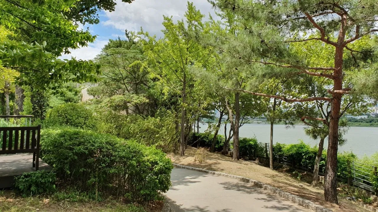 수질정화원을 가로지르지 않고, 그 옆에 한강이 보이는 길로 걷기 시작했습니다.
