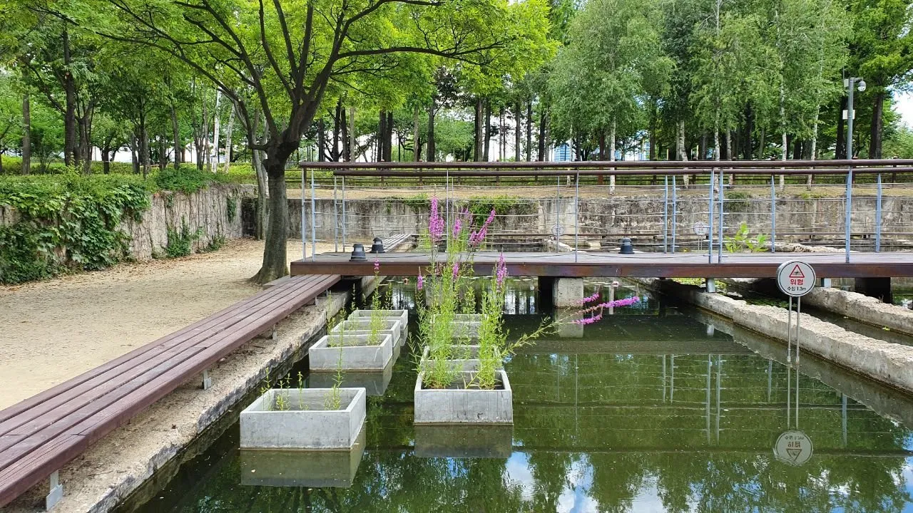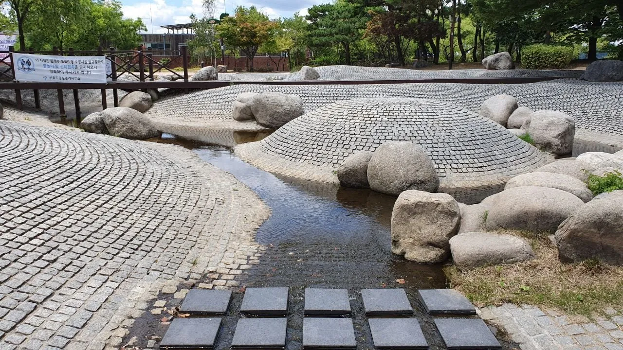 수질정화원 옆에 있는 환경물놀이터입니다. 봄에는 물이 없었던 걸로 기억하는데, 이 날에는 물이 흐르고 있었어요.