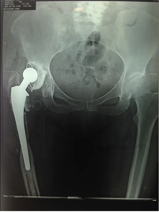 We are talking about a dislocation of the hip prosthesis when the artificial femoral head comes out of the prosthetic acetabulum. Functional disability, pain and shortening of the lower limb are the main manifestations of dislocation of the prosthetic femoral head.