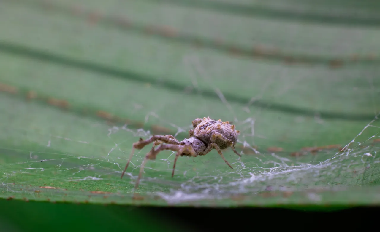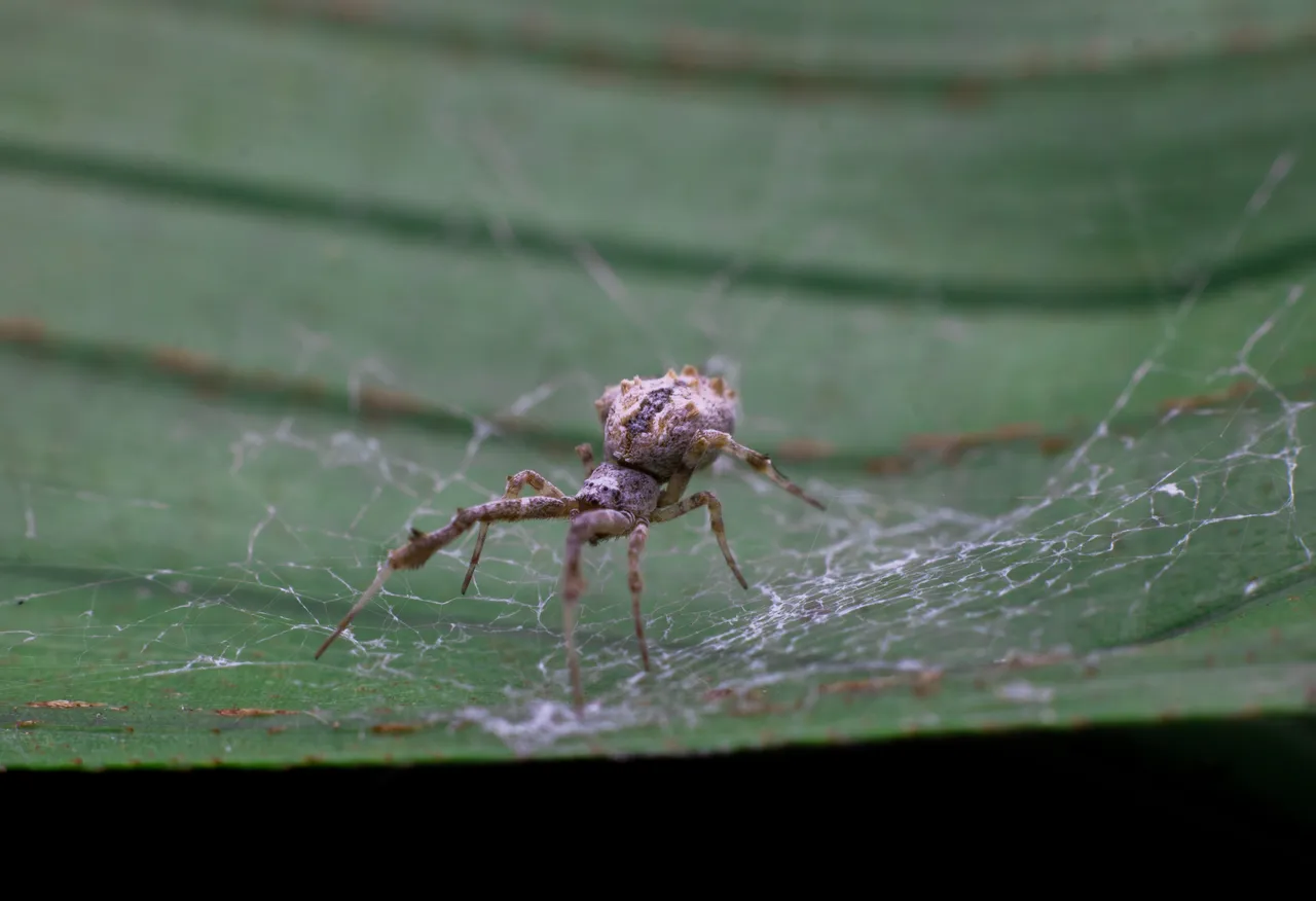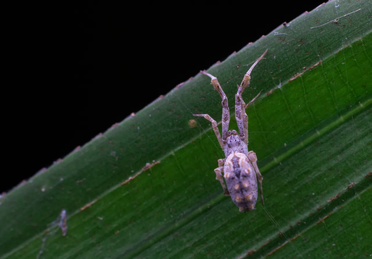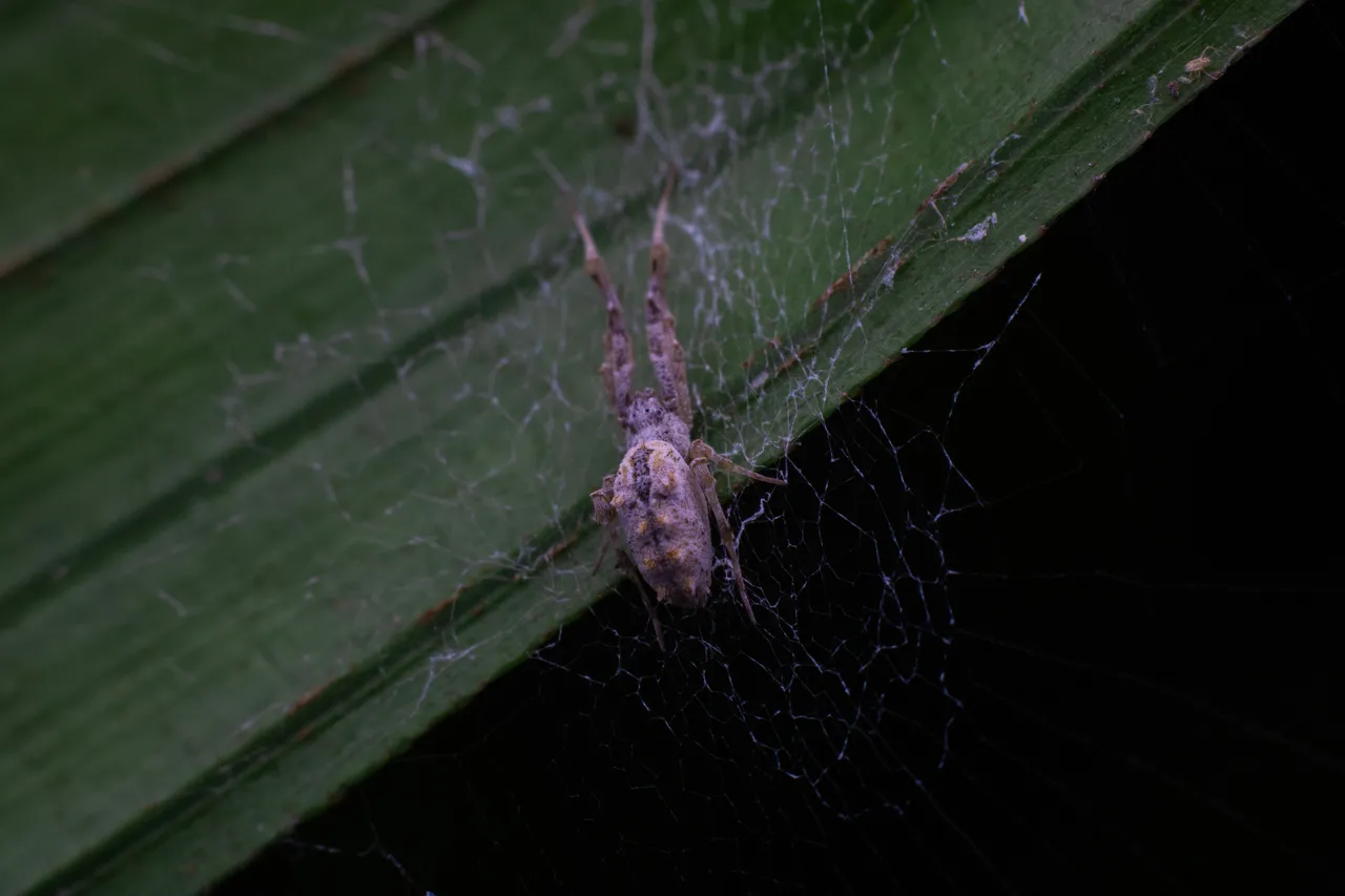 And then I also have another small spider that I found on the underside of a small palm leaf. This spider might be from the Uroboridae family. But I can't really find the species name of this little spider.
