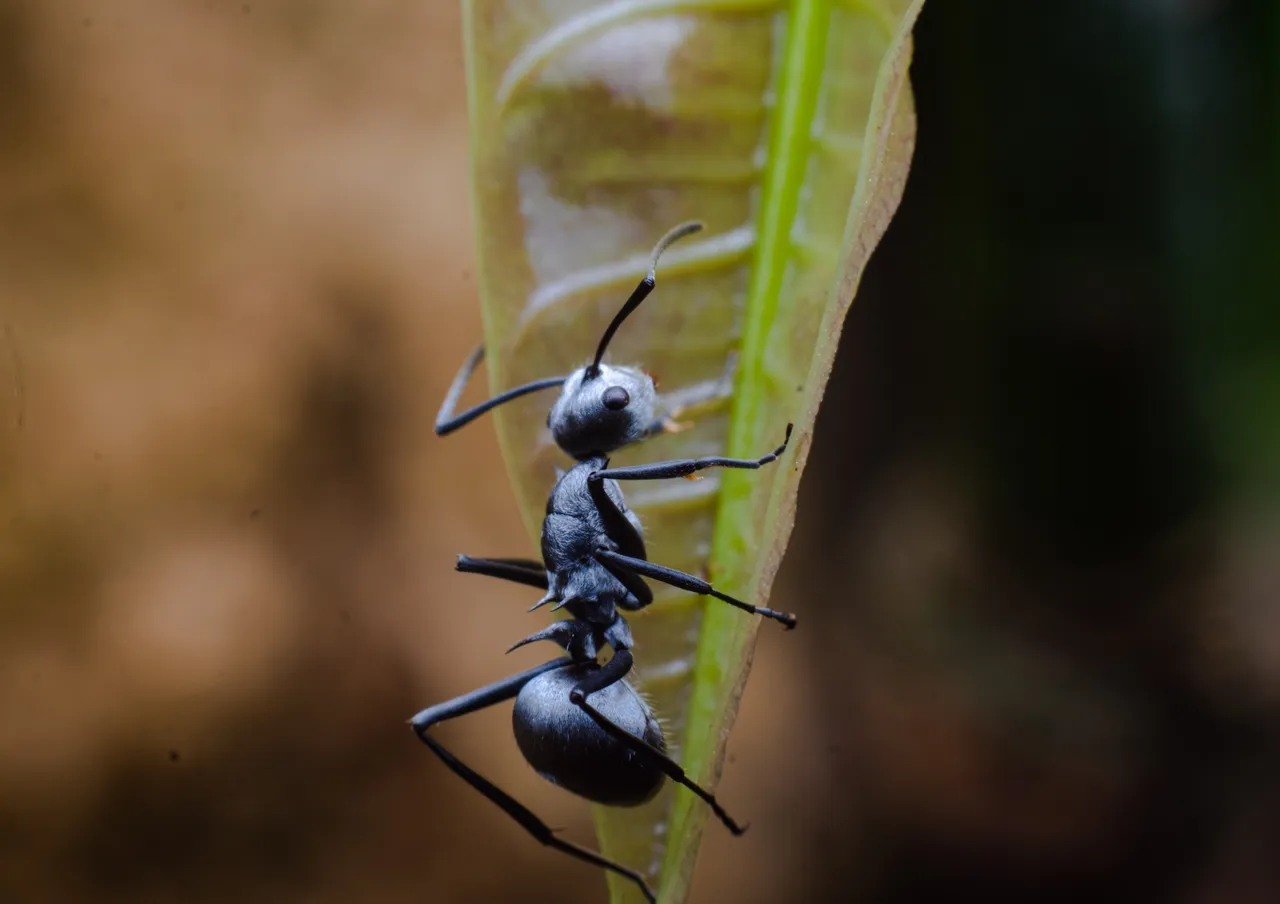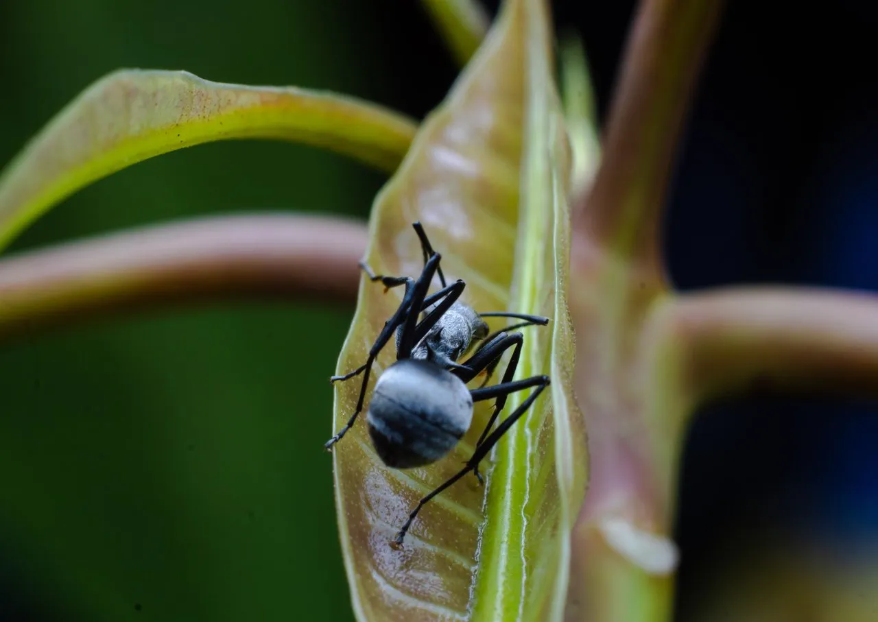 The other difference is that this one here has a slight red color on its mouth, but all black on its body, while the previous one has an orange or yellow color on its leg, while the other part of its body is shiny silver to black color.