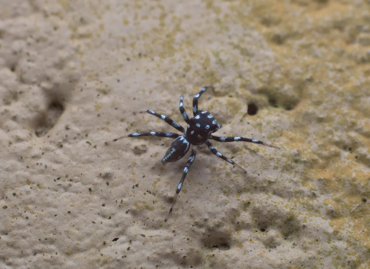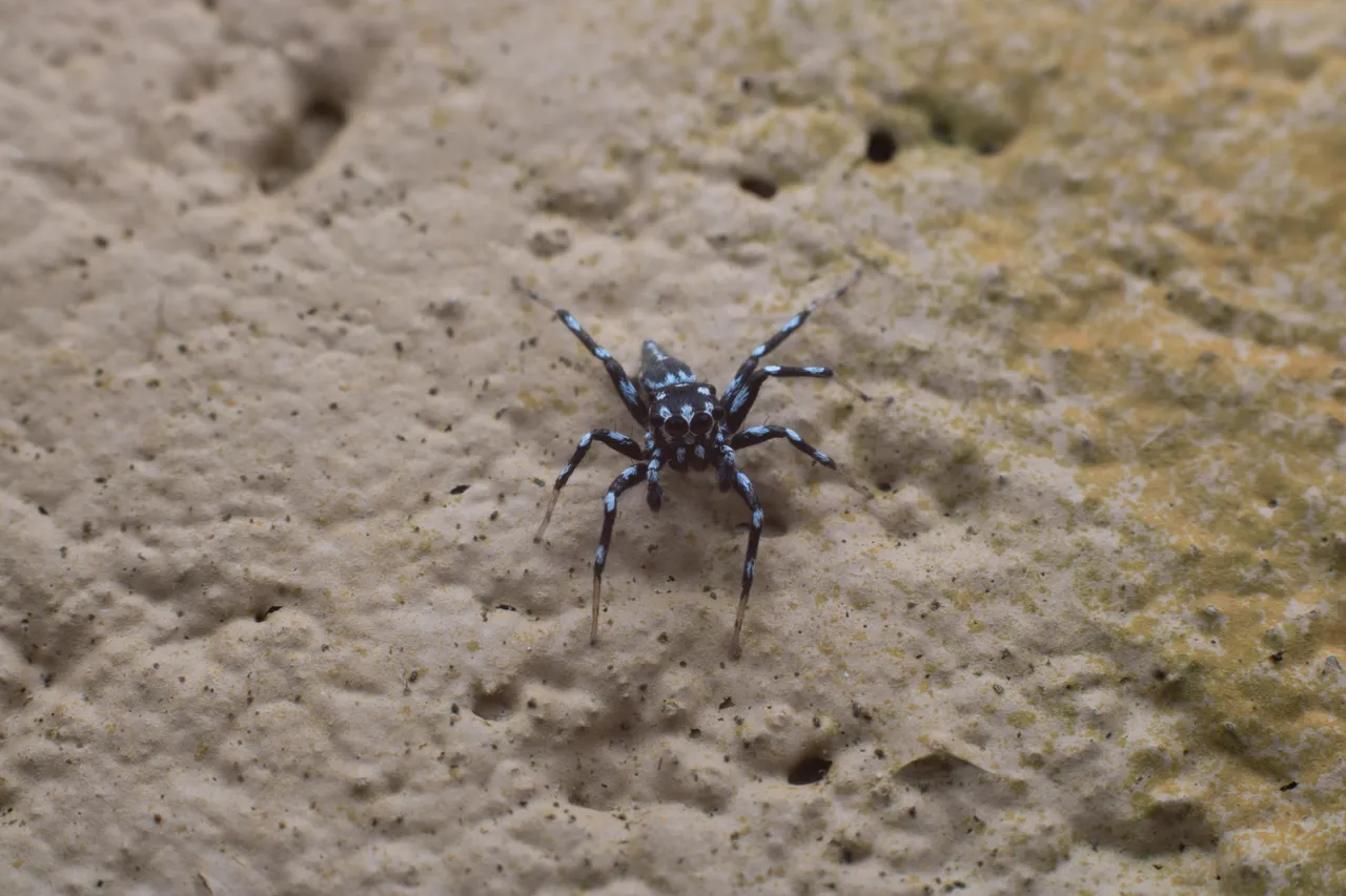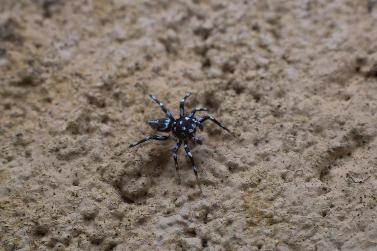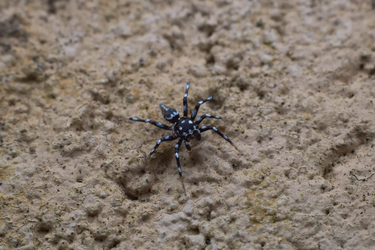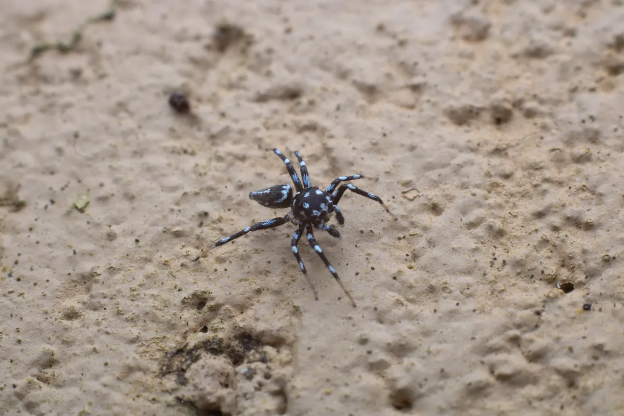 The only problem with this spider is that it has a black or dark blue based color on its body and with some white dots that can be seen all over its body, including its leg.