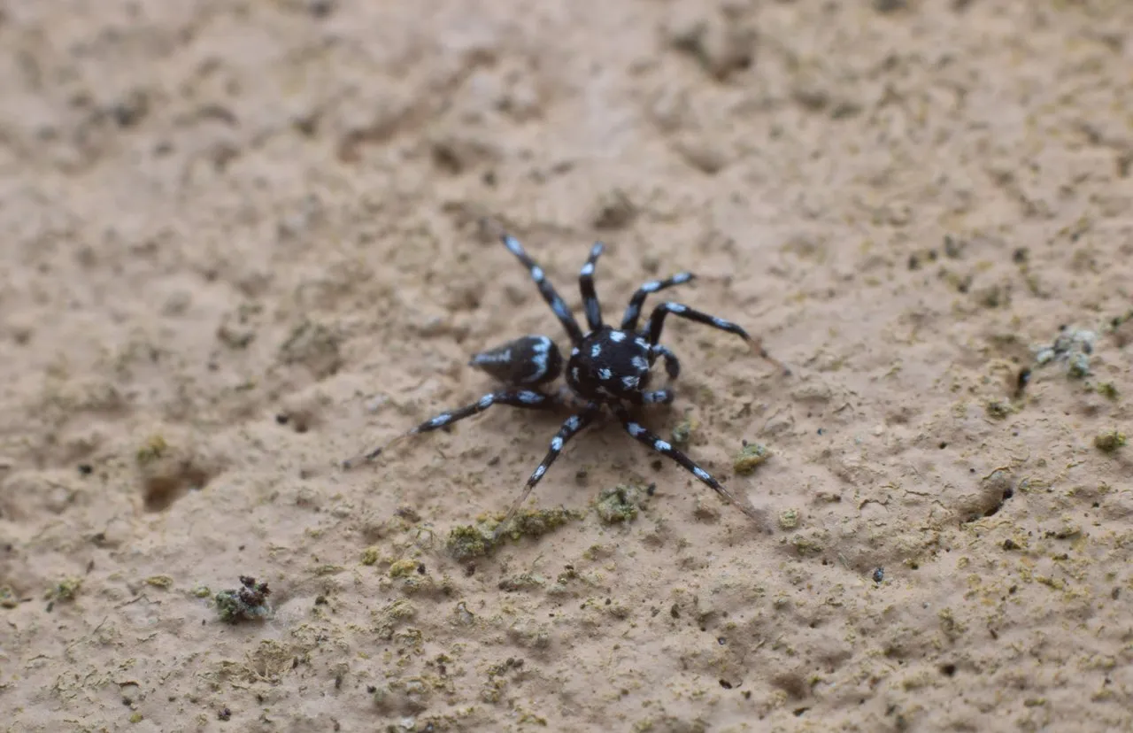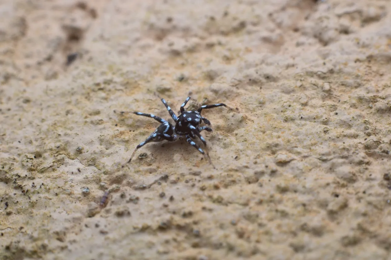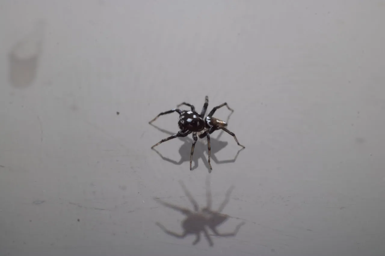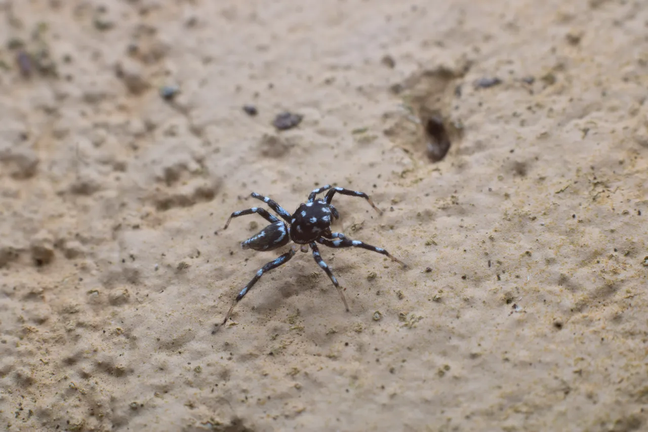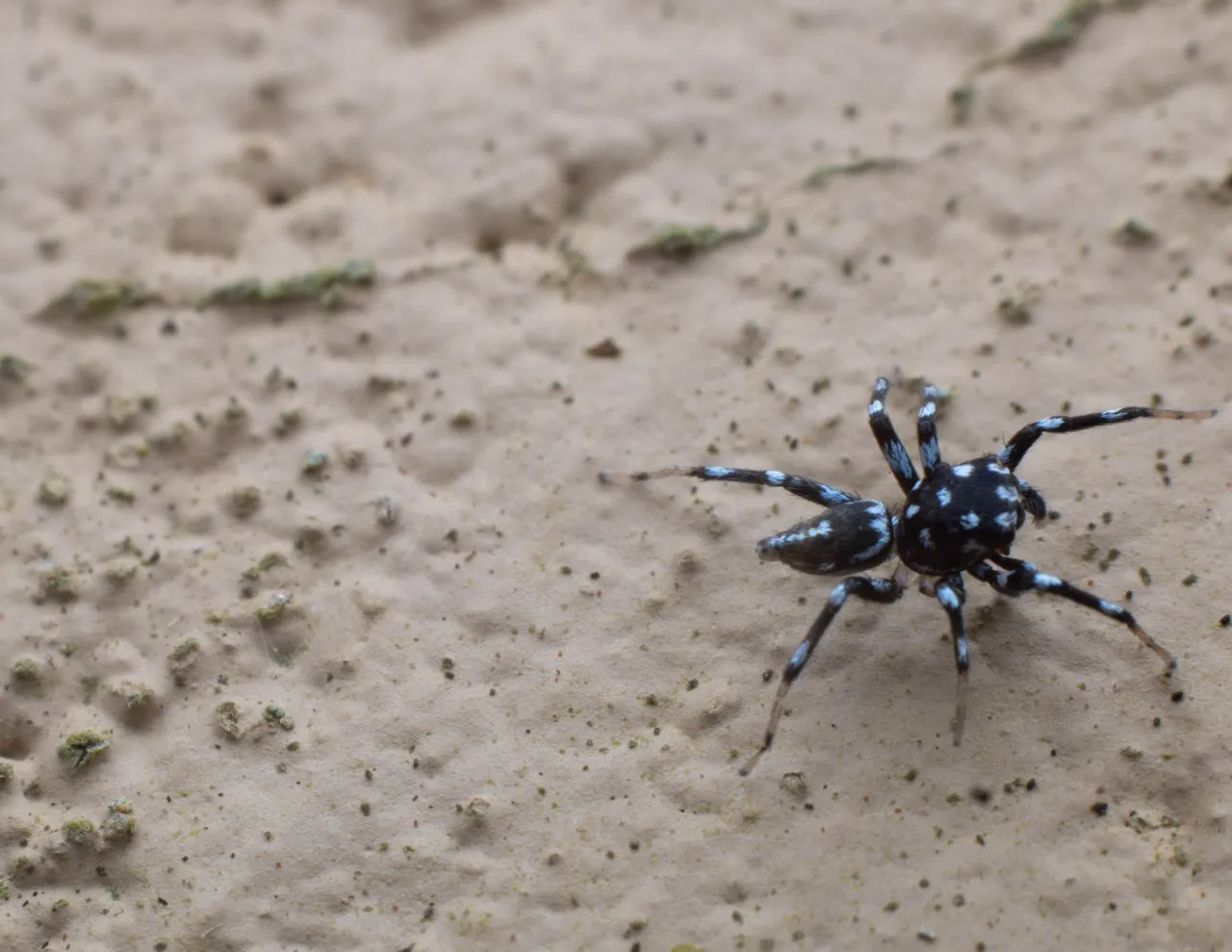 The only problem with this spider is that it has a black or dark blue based color on its body and with some white dots that can be seen all over its body, including its leg.
