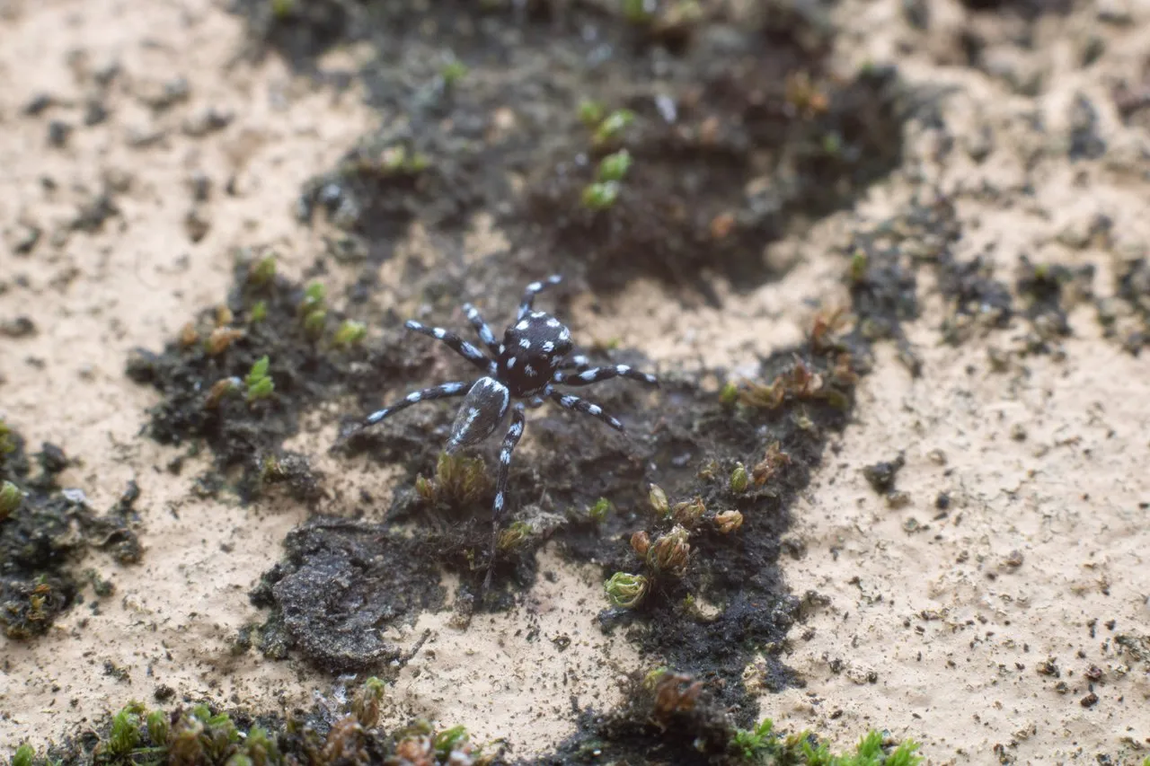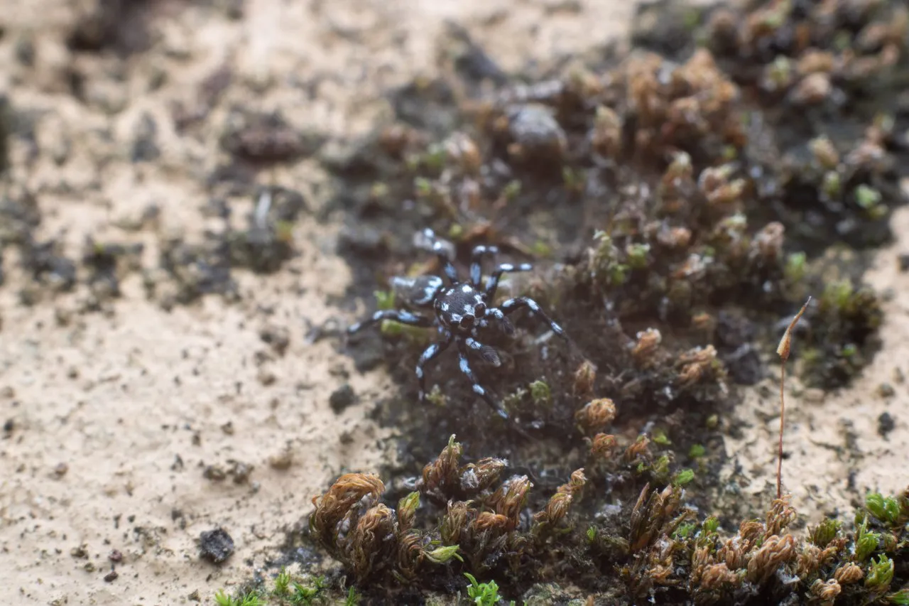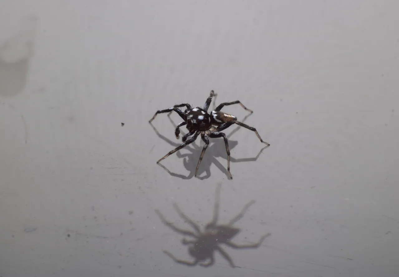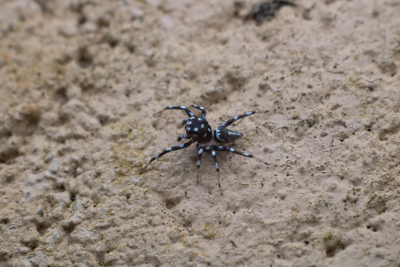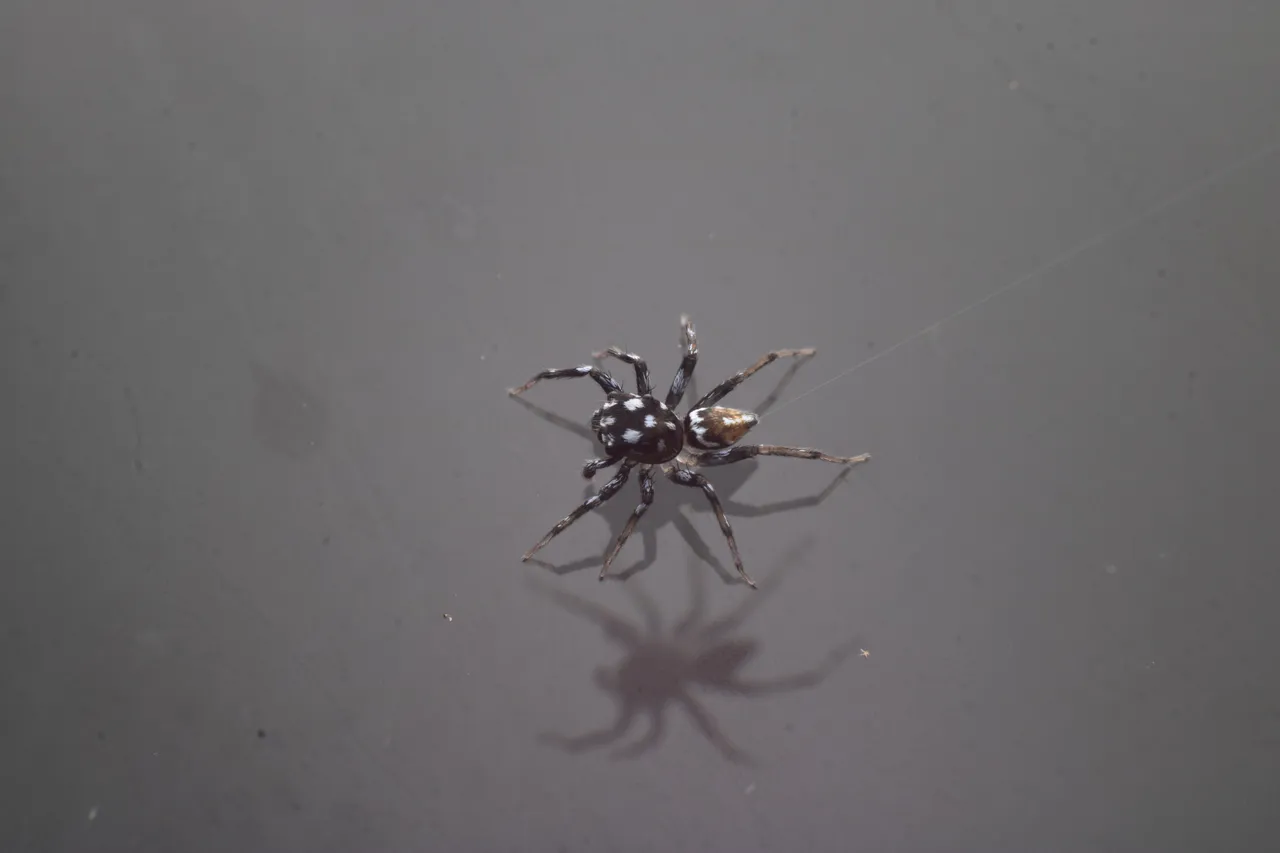 The only problem with this spider is that it has a black or dark blue based color on its body and with some white dots that can be seen all over its body, including its leg.