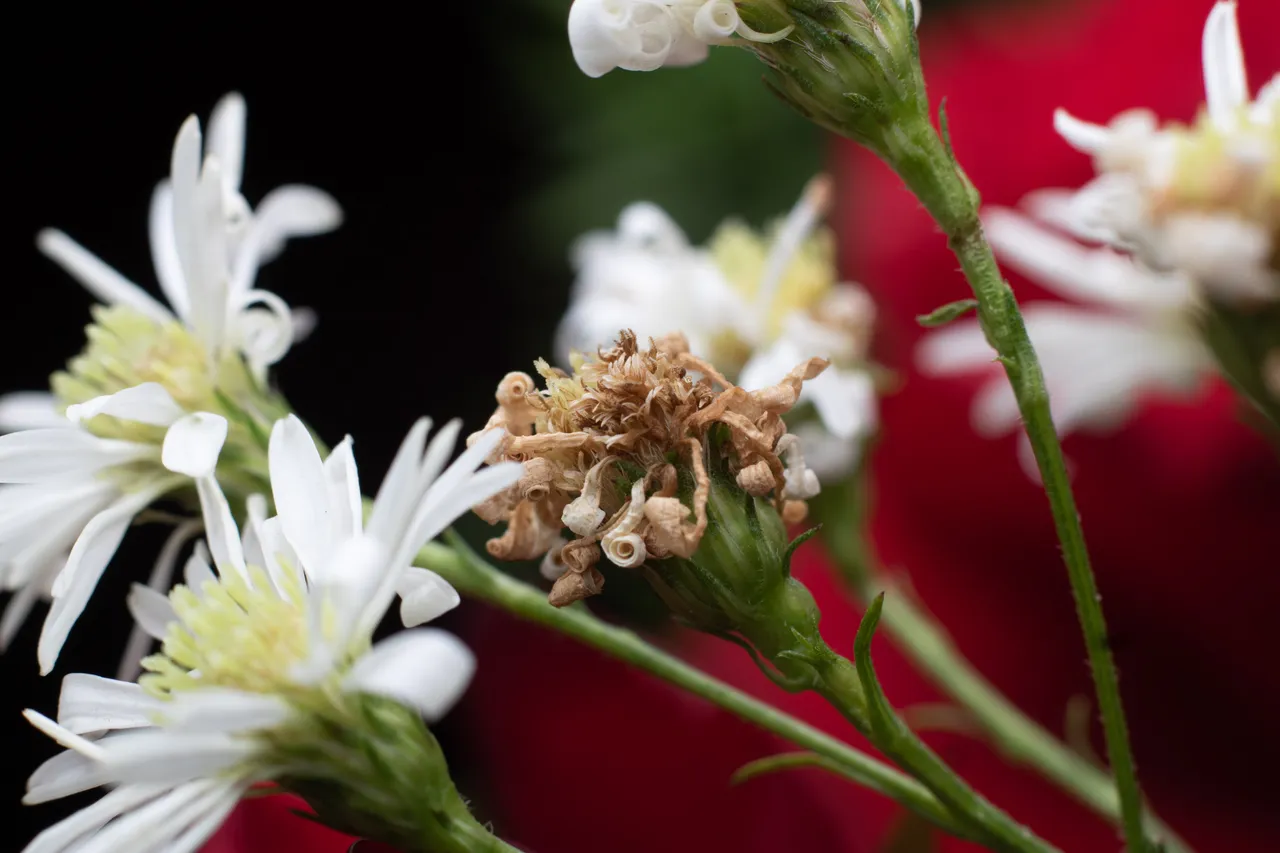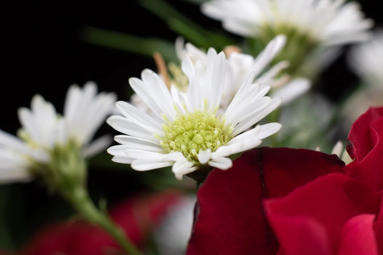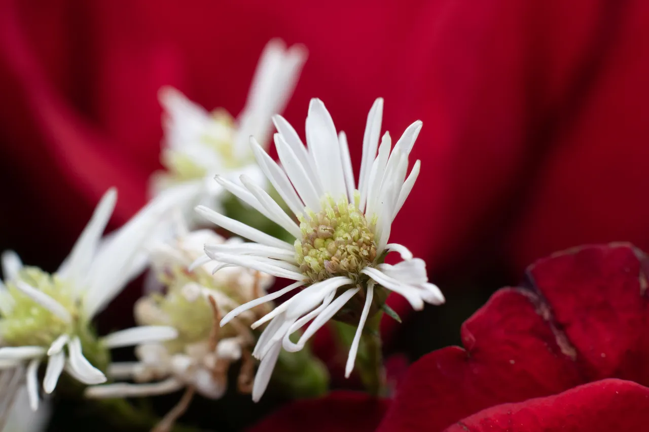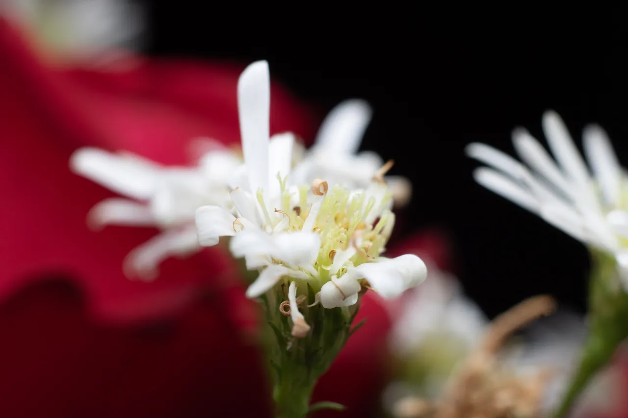 As far as I remember I didn't do much in the post-processing stage. I feel that the white color of the flower fits nicely with the red color of the rose as the background or in the foreground.