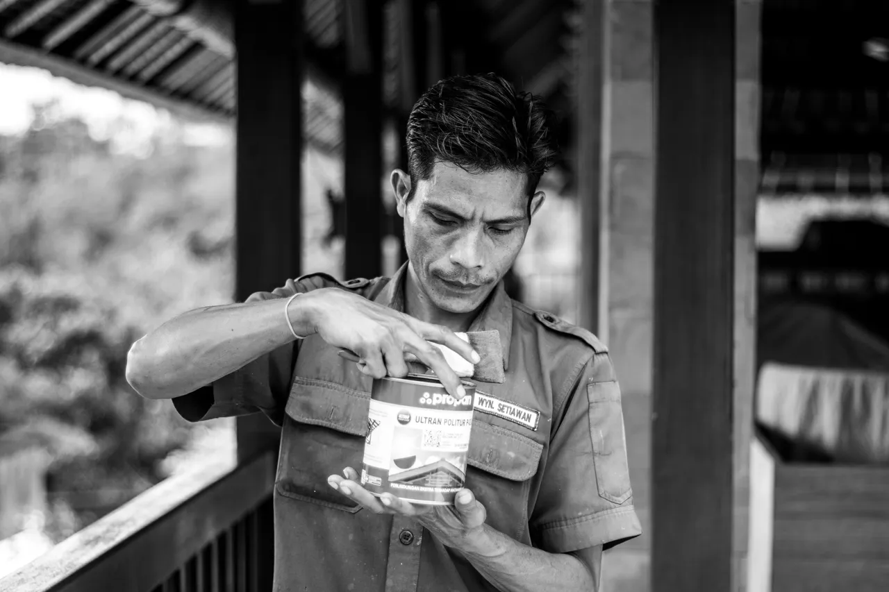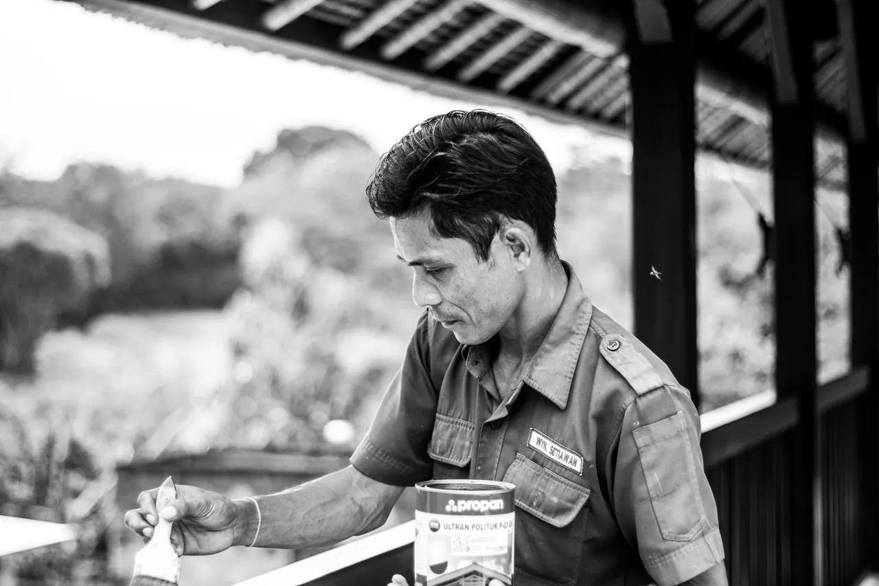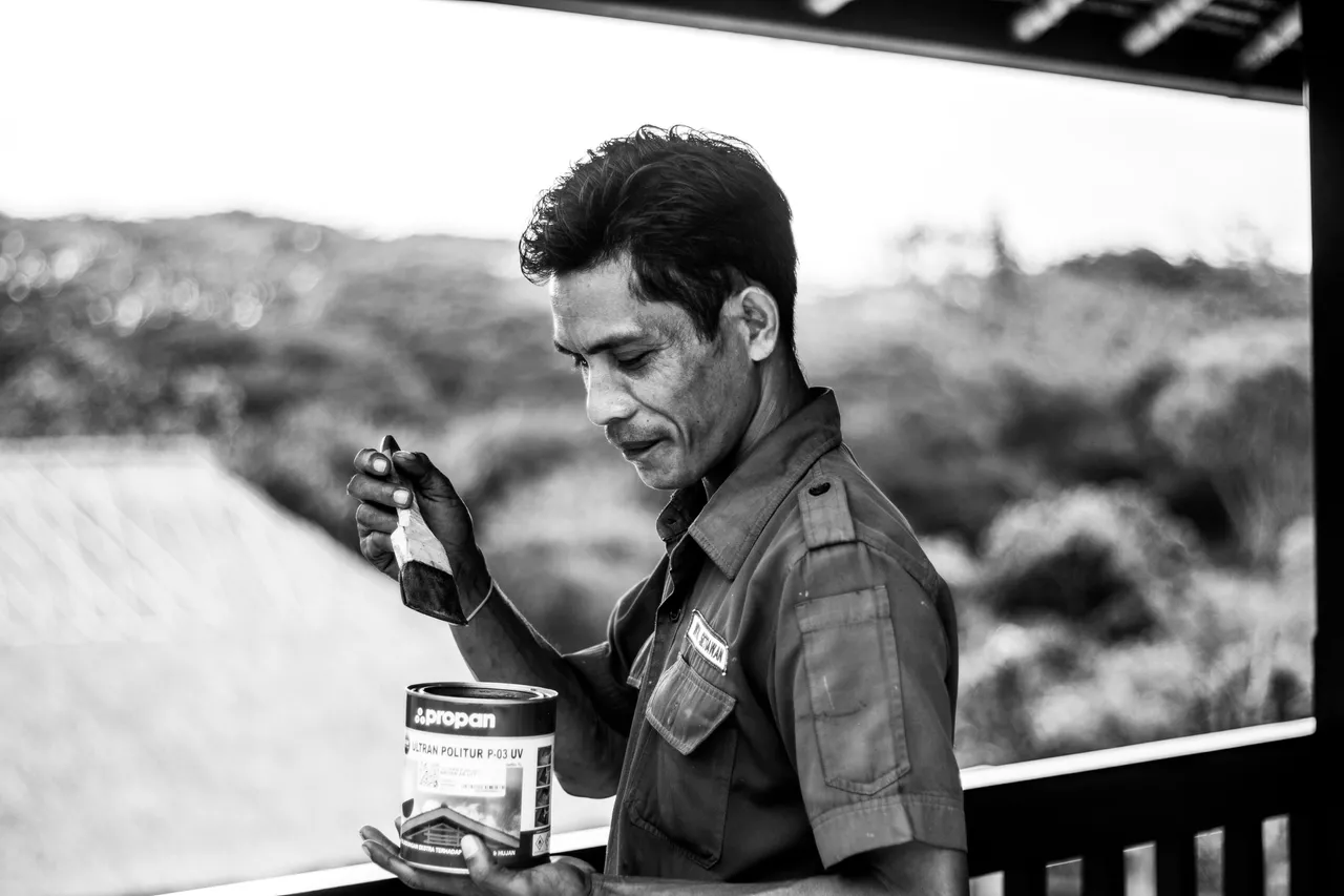 After taking a small walk during my breaktime during the preparation time before my owner came, I went up to see one of the maintenance teams who was painting the wooden railing.