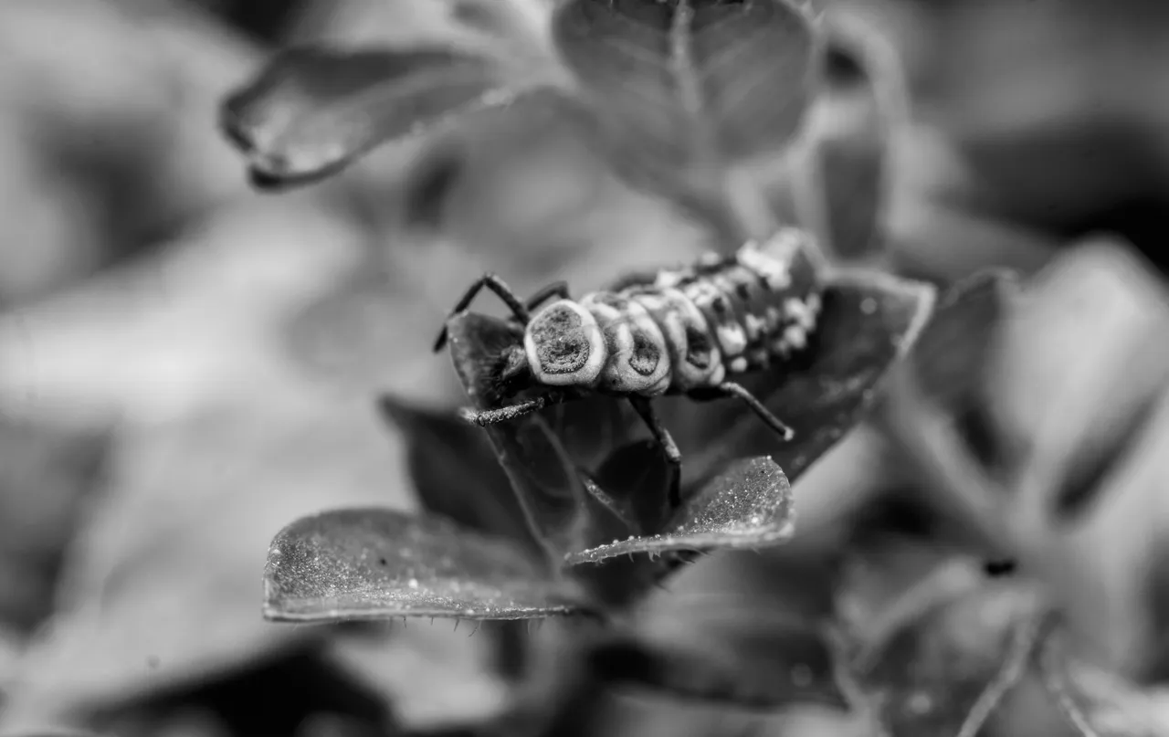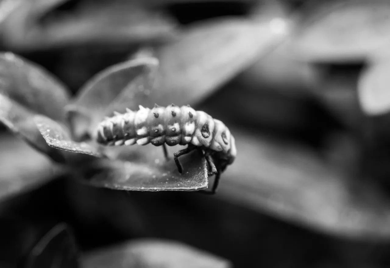 This Monday for Monomad Challenge I have snail and ladybug nymph. The snail I found residing, seemed to be resting on the leaf of a small palm tree. I decided to take two photos of this little beauty. Look at the spiral pattern of its home. But don't be surprised to see this slow creature up above in the high place. I have seen them above a high tree, or up in the ceiling of a building.