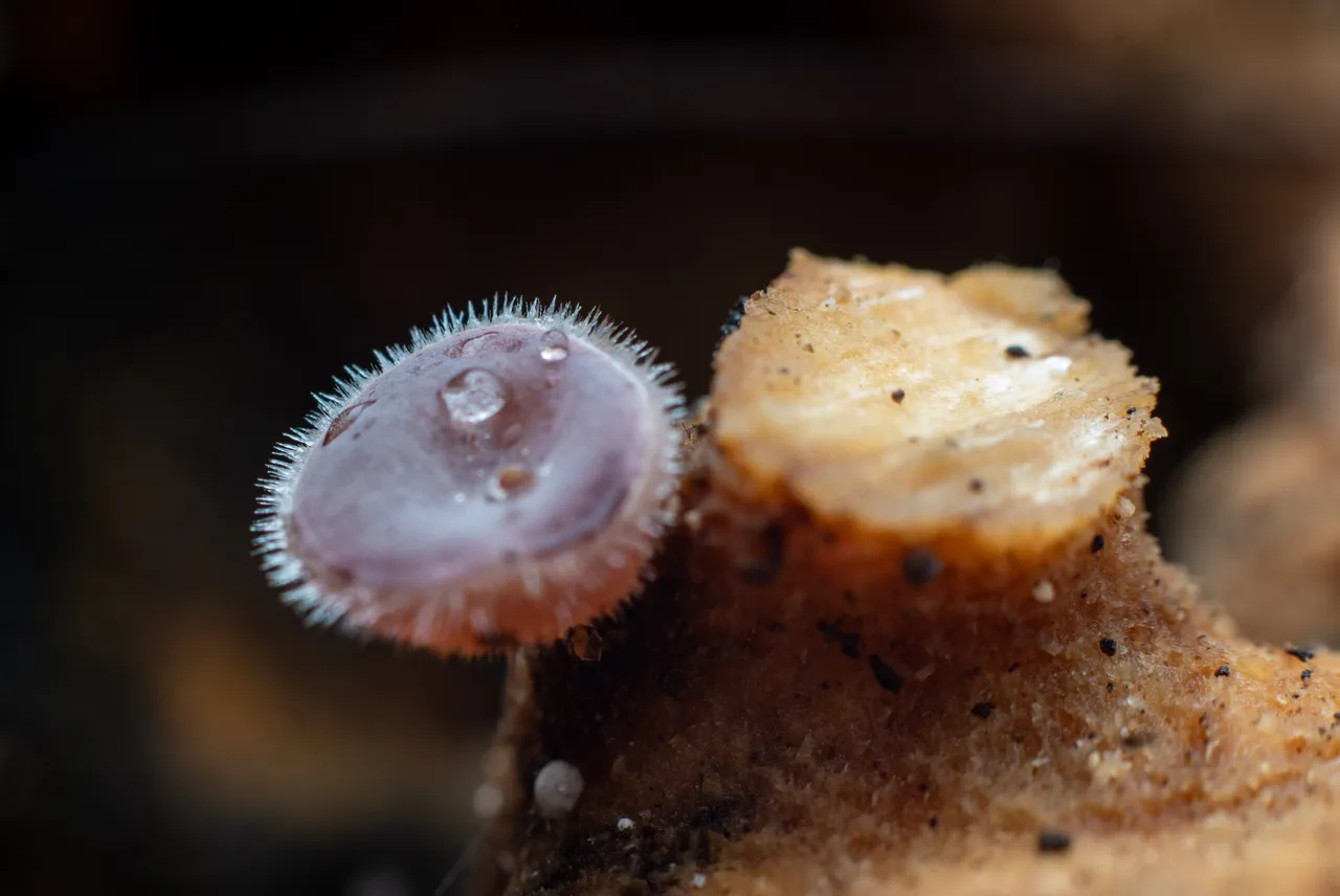 The photos below are of the cup-shaped fungi or mushrooms. Look at the hair on the rim of the cup of the mushroom.