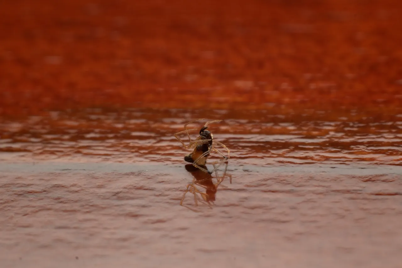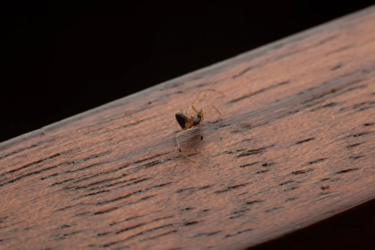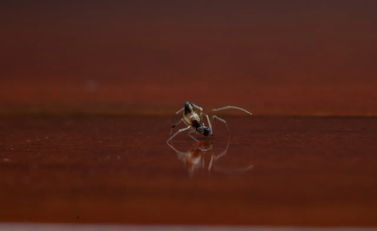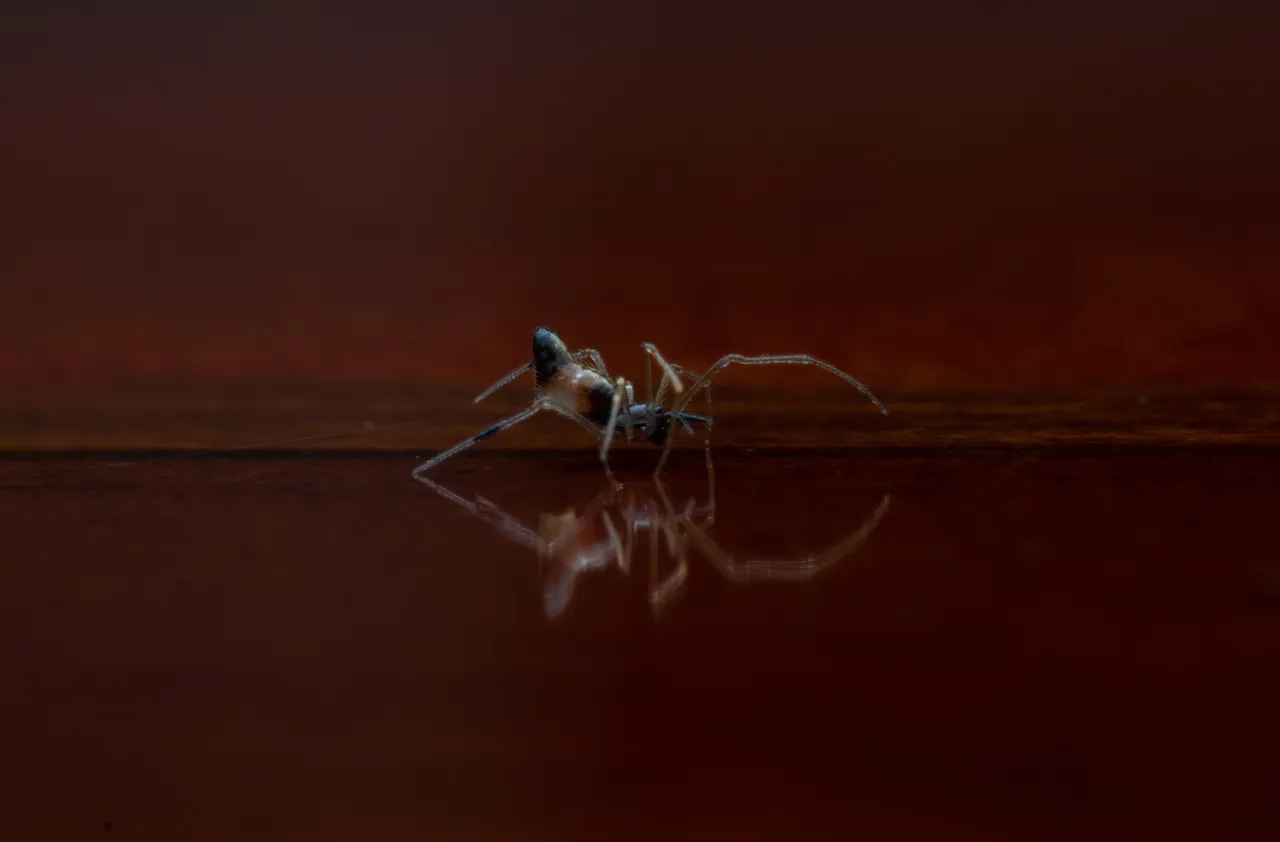 I also like how the surface of the writing table make a great reflection of the spider because of the light from my flash.