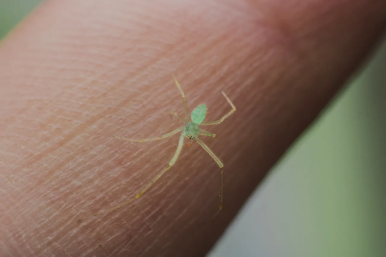 You can compare the size of the spider and also the wrinkle in my fingers.