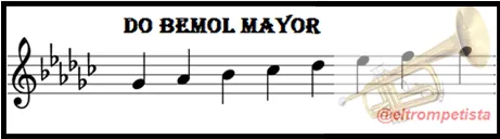 Hoy aprenderemos como está conformada la escala Do bemol mayor y a su vez como se debe ejecutar en la trompeta, es decir que pistones debemos pulsar para conseguir dicha escala.