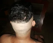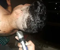Por mi mente solo paso una pregunta ¿quién es más loco, el por pedirme que lo deje calvo o yo por aceptarlo? jeje, bueno sin duda alguna el me gano, pero sus ocurrencias no terminan allí; luego empieza a cortarse la parte superior de la cabeza con tijeras, durante el proceso lo realizaba como todo un experto, pero al ver el resultado se notaba que era menos que un amateur, tardo aproximadamente 10 minutos. Cuando pensé que ya eran muchas locuras por una madrugada, saco una afeitadora manual gillette y me pide que termine de dejar su cabeza sin pelos jeje.