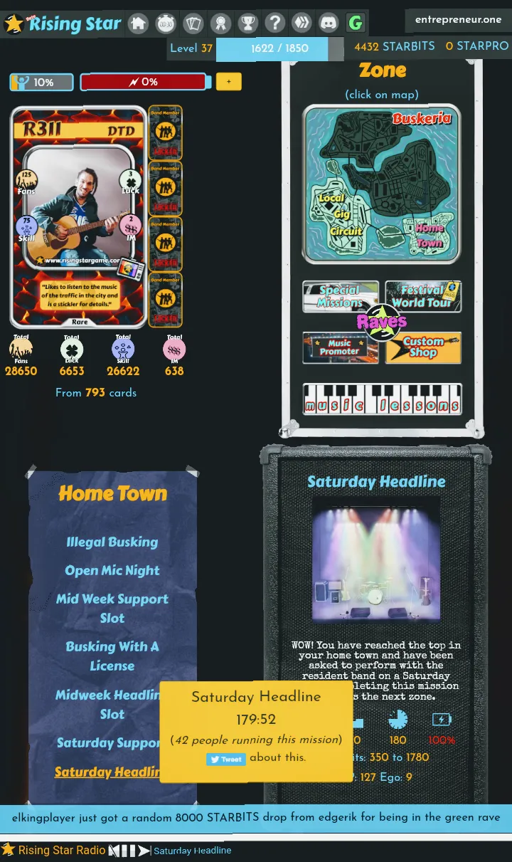 I am glad to be on level 37, and am aiming on hitting level 40 soon. I keep playing the Saturday Headliner mission for maximum Starbits payouts, and I can say the maximum payout amount has steadily increased as I have purchased more NFT cards and have taken more music lessons. I need to keep watching my ego score, and this is essential to keep my Starbits payouts high.