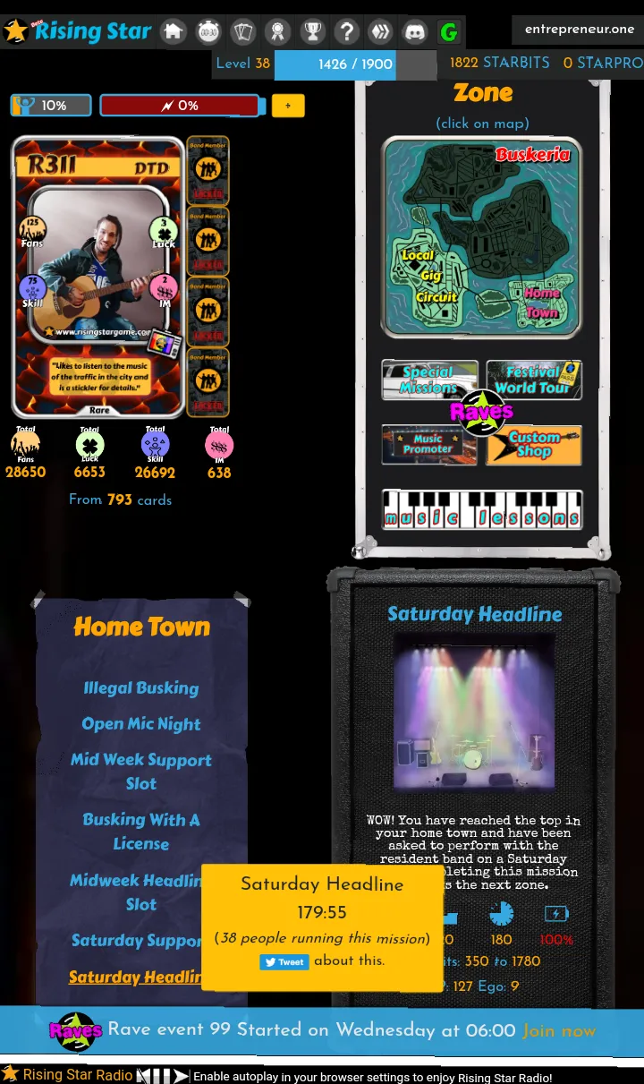 Build wealth slowly but steadily. I am a huge fan of Risingstar, and will keep playing with the current strategy. This game is good, and I am approaching level 40 quickly. Have a great evening, and game on 🎮🎸