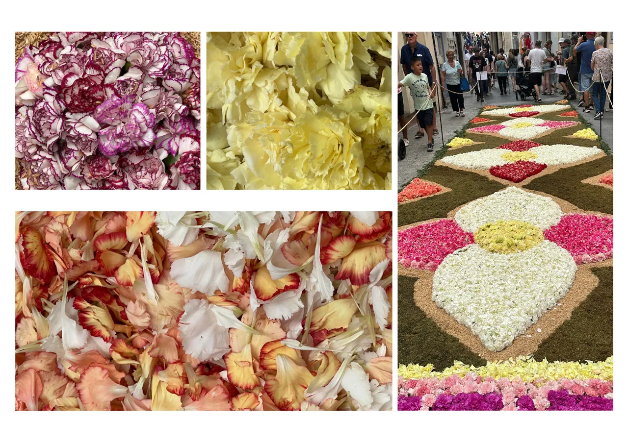 Each one of the creations of the flowery carpets was more beautiful than the previous one. A very pleasant scent flooded the streets and the people were infected with the great joy produced by the beauty of the colorful flowers.
