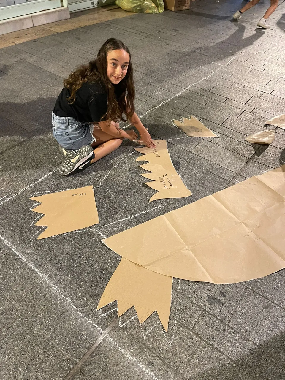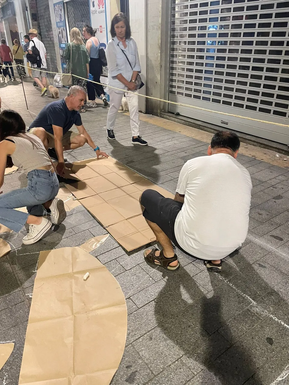 La noche antes comenzaron a marcar las calles con los diseños y terminaron en horas de la madrugada. Al siguiente día, muy temprano, todos empezaron manos a la obra a crear la magia de las alfombras de flores.