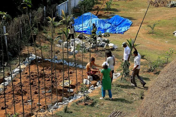 Quinn led the creation of a hand-built structure on the test site in India, sharing some of his sustainable tricks, and holding the standards for using the gifts of mother nature.