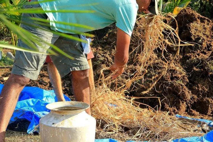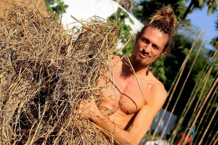 Adding in the grasses for the perfect cob mixture to build the building straight from the earth.