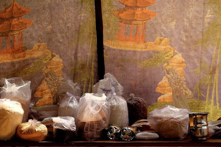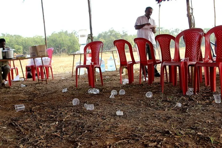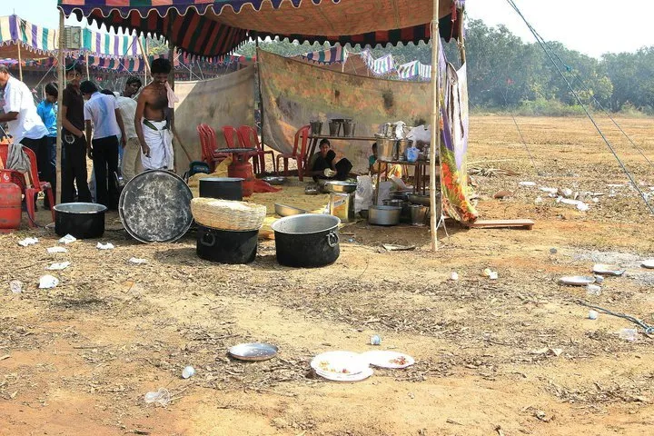 After the Yoga Retreat Puja Ceremony. That's where the cups and the plates all go. That's where they go all in India. I didn't see trash cans in any public places, and apparently they didn't need them!!