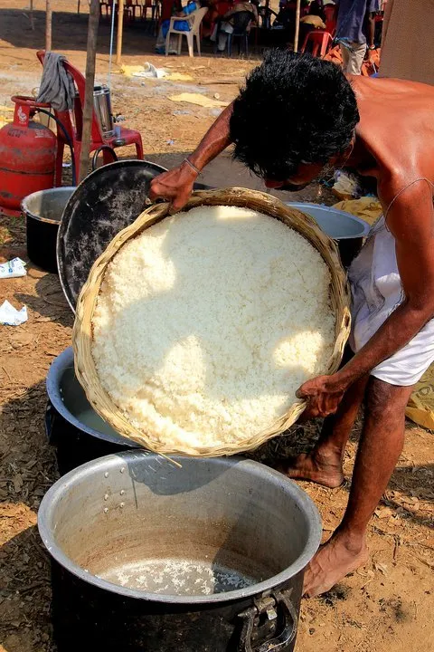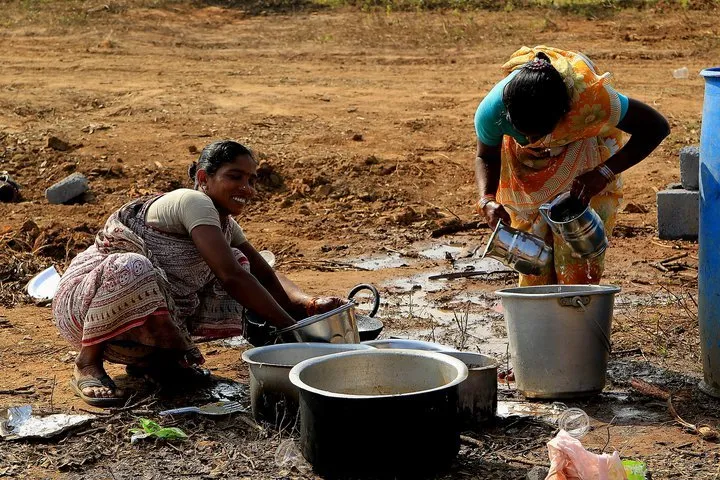 All water for dishes cooking and drinking for the Puja event was also hand pumped and carried in 1/4 mile by these women.