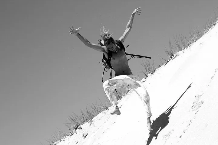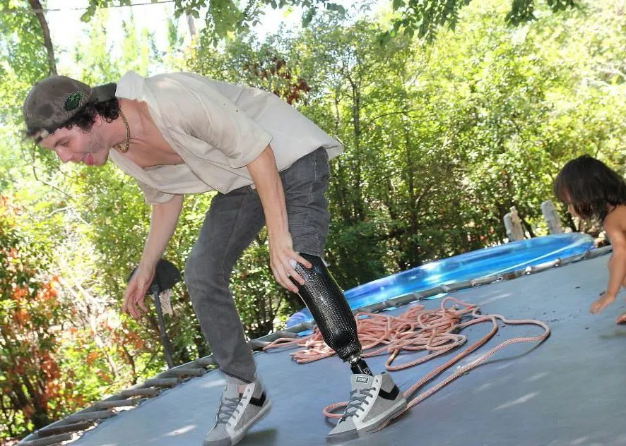A few months after losing a limb, he engages his own power and takes to finding his balance again on the trampoline!