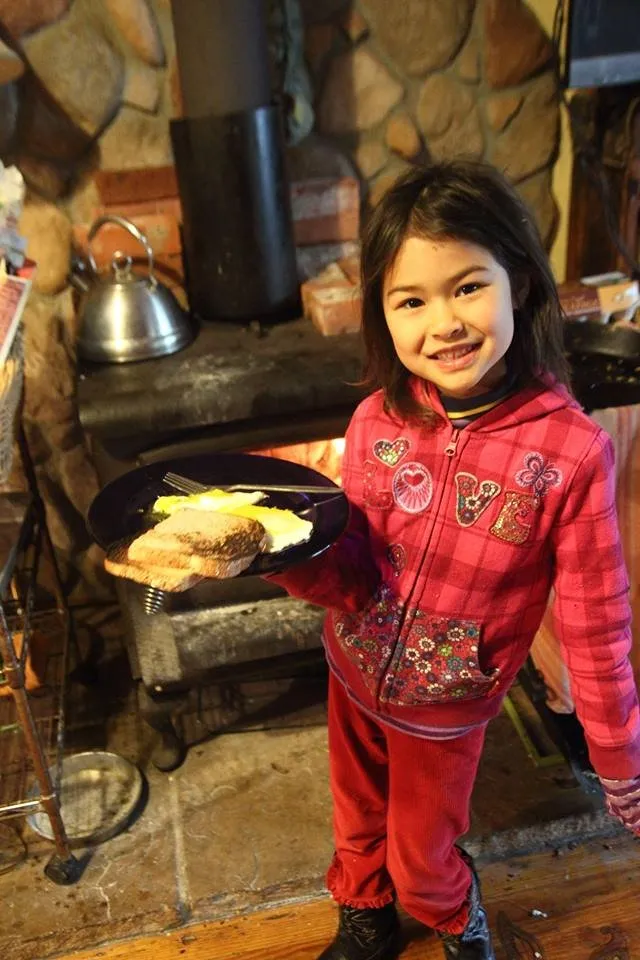@qiqi-power made eggs and toast on the wood burning stove for 5 people all by herself, stoking the fire and even doing the dishes! She took care of her needs and the needs of others, without blaming anyone for not putting breakfast on her table!