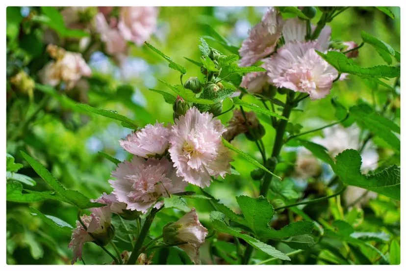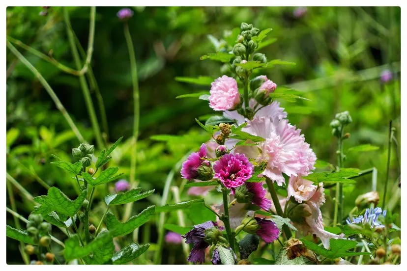 蜀葵别称麻杆花,是我国一种很重要的传统花卉,花色花形多样,是园林园艺常见品种。