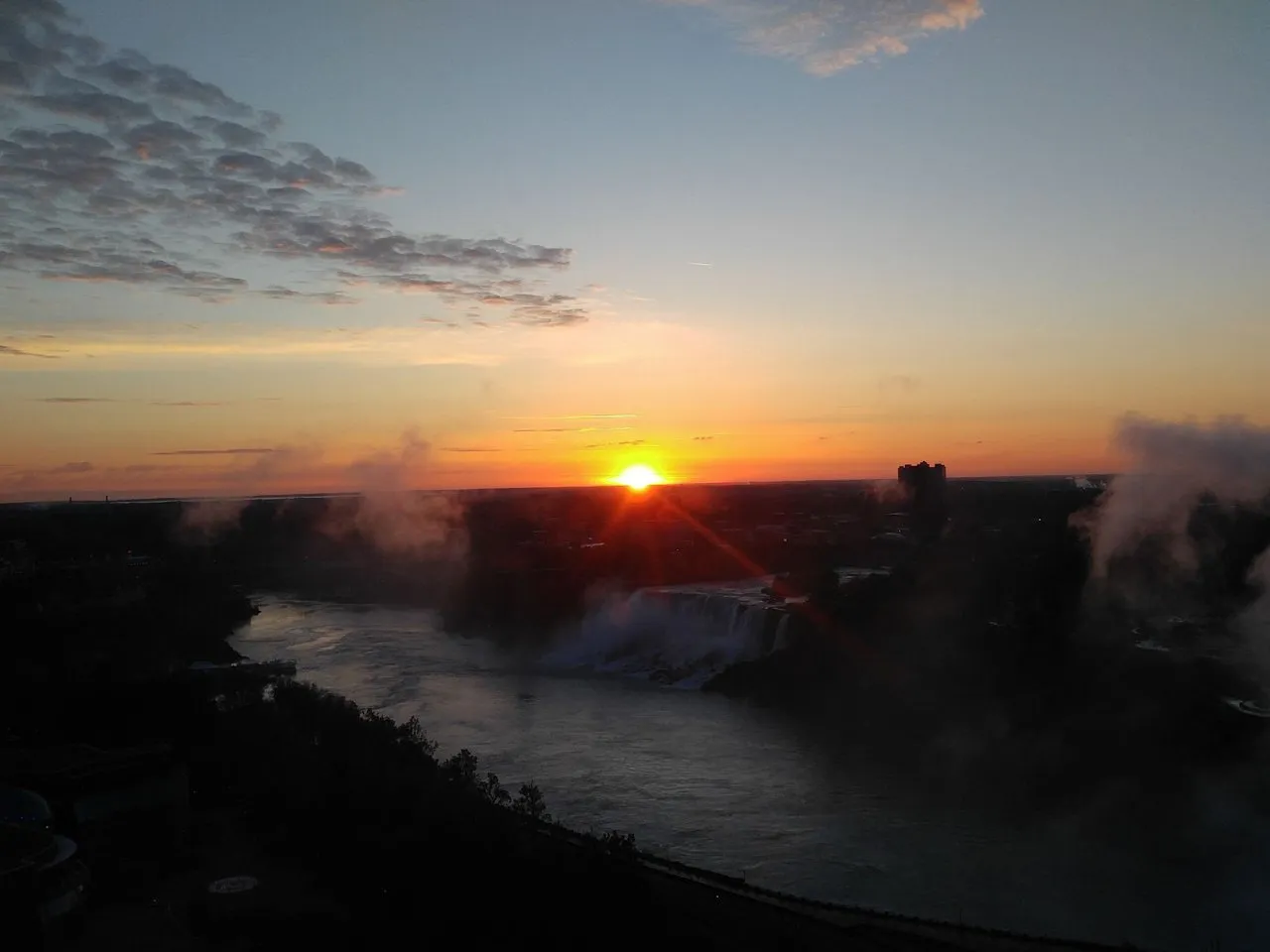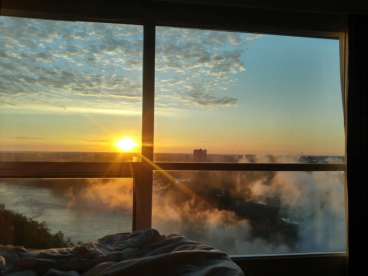 전혀 기대하지도 못했던 멋진 일출이 커튼 밖에서 일어나고 있었습니다.
