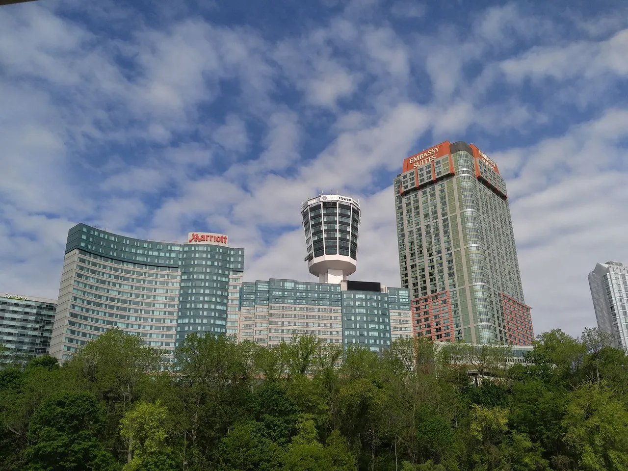 호텔 광고는 아니지만, 이곳에는 나이아가라 폭포의 멋있는 뷰로 유명한 호텔들이 몇몇 있습니다. 바로 위의 사진 왼편에 보이는 Marriott 호텔도 그 중 하나이며, American Falls 건너편에 위치한 Sheraton Hotel 도 있습니다.