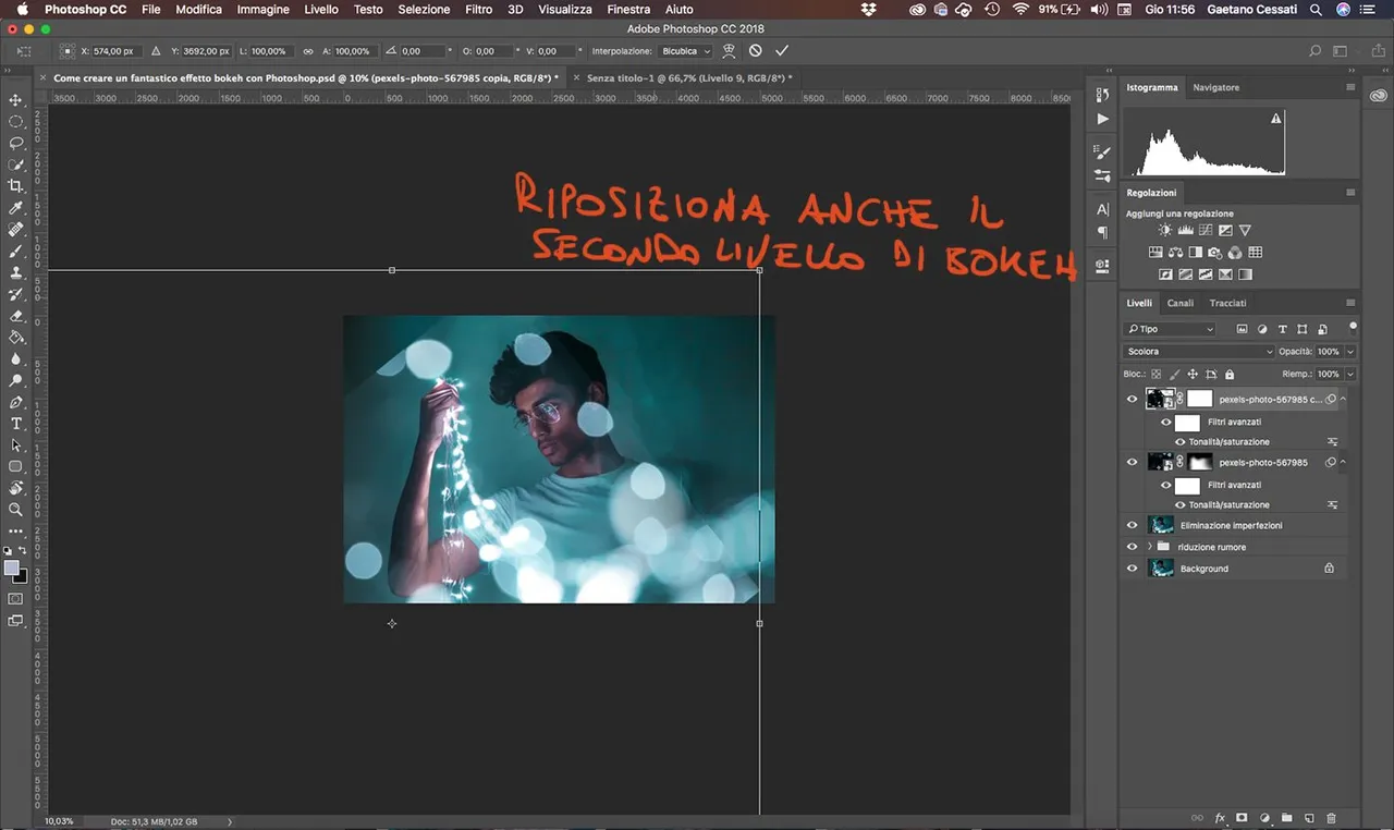 • Ripeti le operazioni di trasformazione e riposizionamento del bokeh
