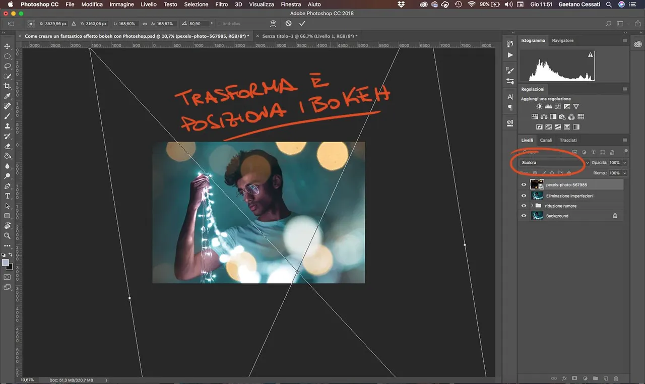 • Trasforma e posiziona il bokeh in modo da far combaciare i dischetti luminosi con le fonti di luce della fotografia sottostante