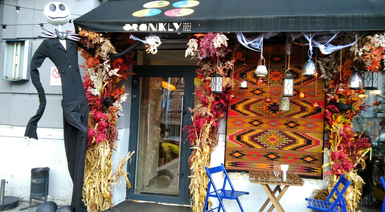 А загалом я помітила, що цього року ентузіазм прикрашати магазини, вітрини, кафе у столиці тематичним гелловінським декором відчутно згас. І це не дивно, бо в країні триває запекла війна. Тож єдиним атрибутом свята залишився гарбуз.