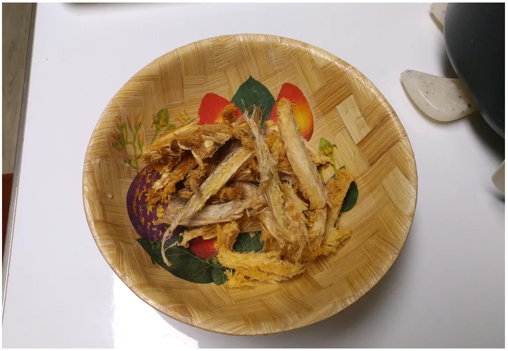 드디어 5분이 지나고~ 황태포로 만든 먹태가 완성되었네요.