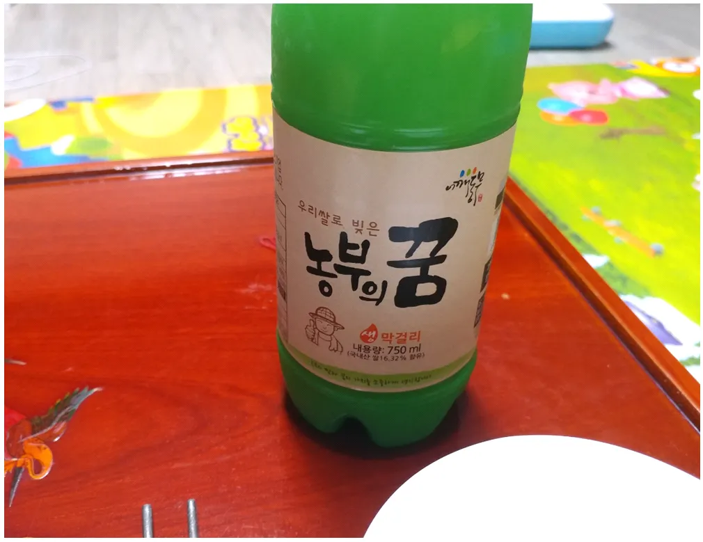 우리쌀로 빚은 농부의 꿈 막걸리입니다.
