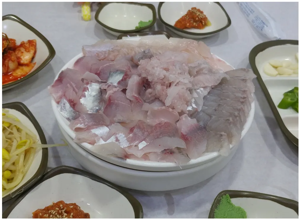 굵직굵직하게 썬 회가 어찌나 식감도 좋고 맛도 좋은지~