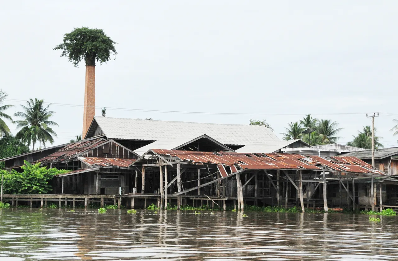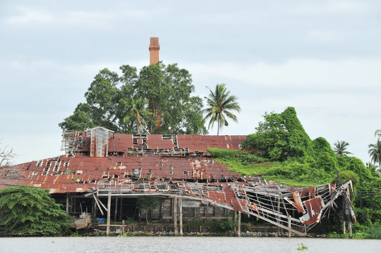 An old abandoned factory with a chimney pretending it's a tree