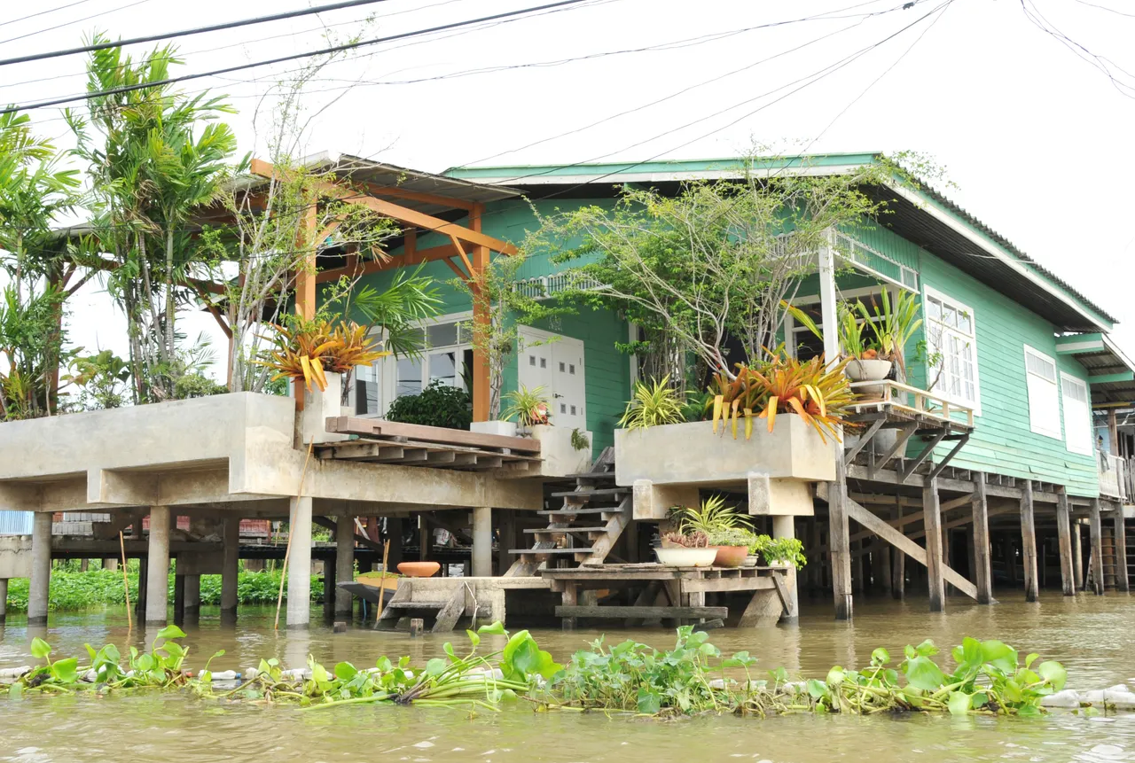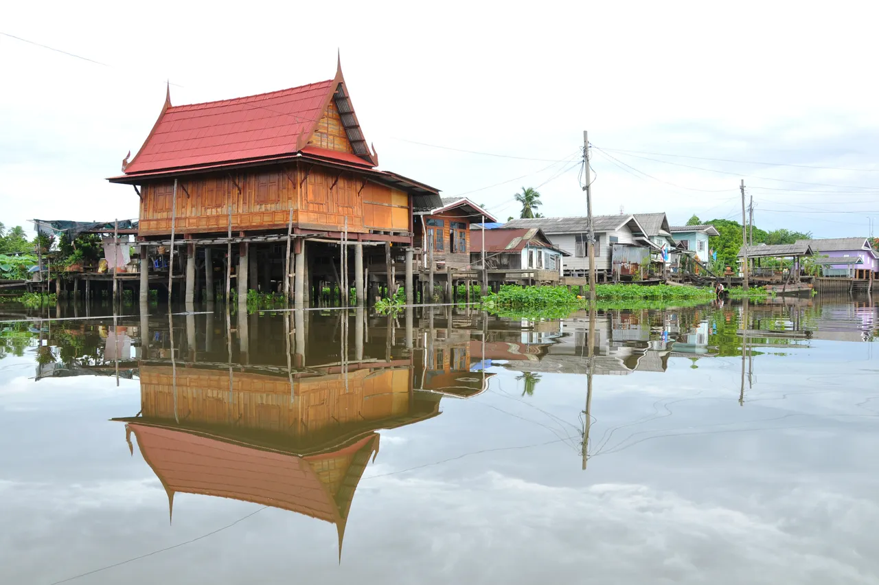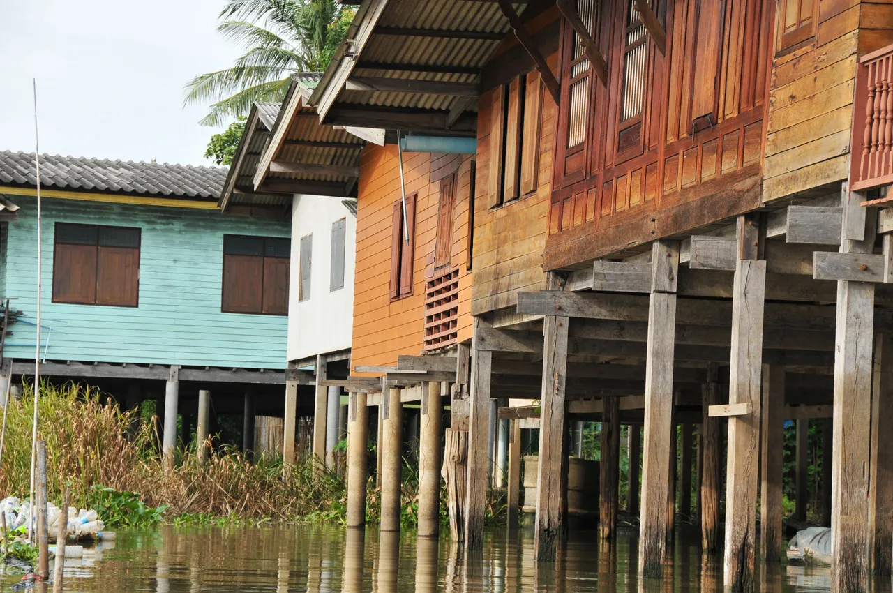 Nice colours of the wooden riverside homes
