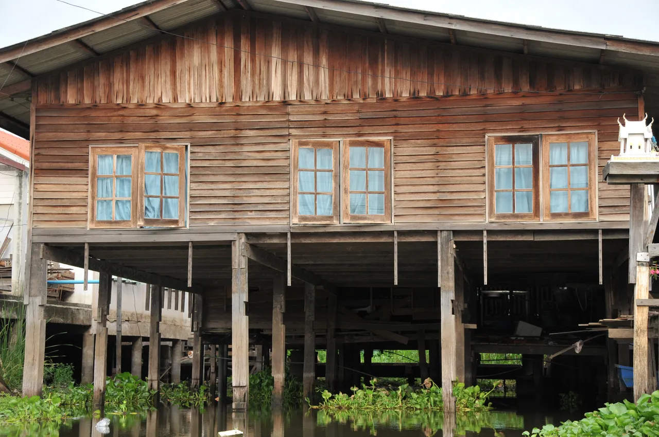 Traditional wooden house on concrete stilts