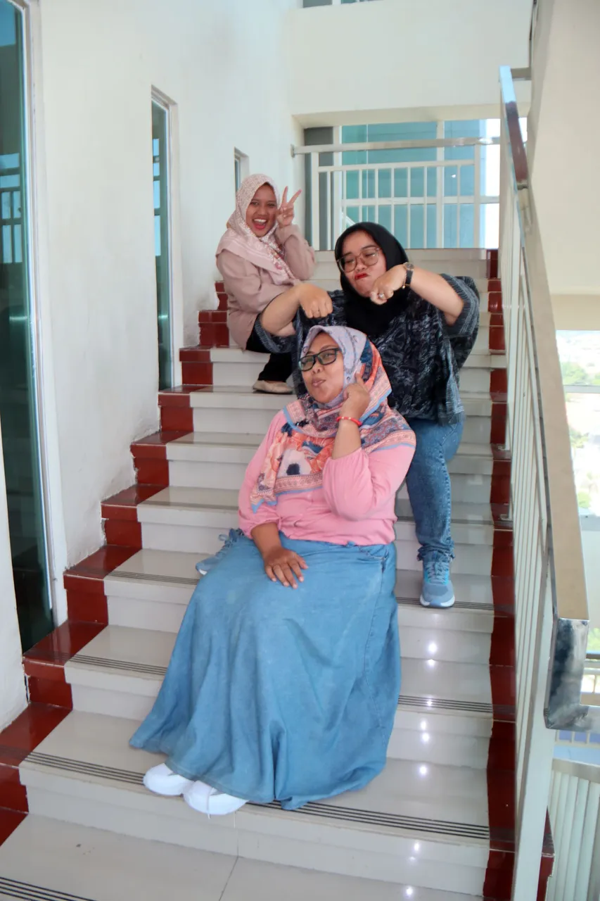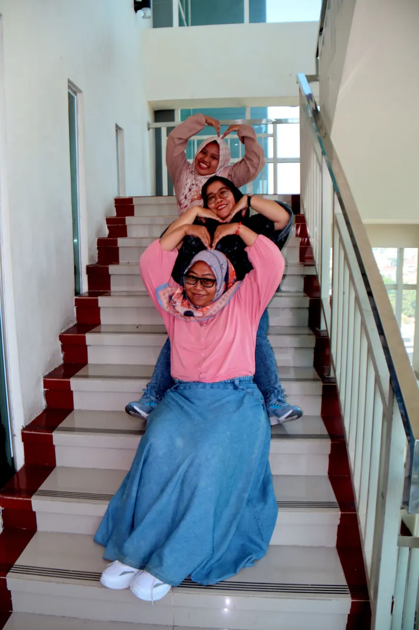 Memang sulit dipisahkan tiga besti (teman akrab) ini, kalau sudah ketemu di satu acara, pastilah rame. Sebetulnya ada satu lagi besti yang nggak kefoto disini, Mbak Ida namanya, mungkin dia lagi disuruh-suruh ambil konsumsi di lantai bawah sama para senior.